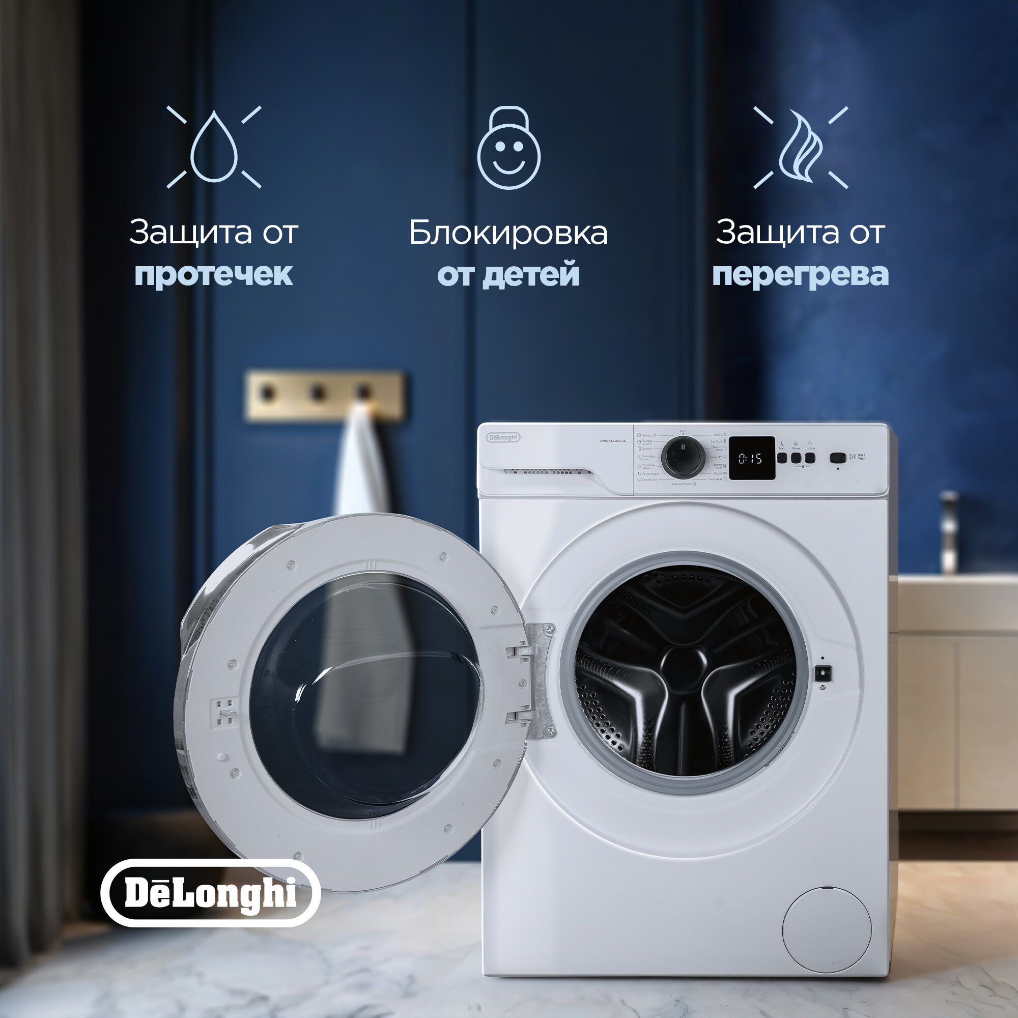 Стиральная машина DeLonghi DWM 724 ALICIA 53 см, 7 кг, отсрочка старта, 15 программ, половинная загрузка Eco-Logic