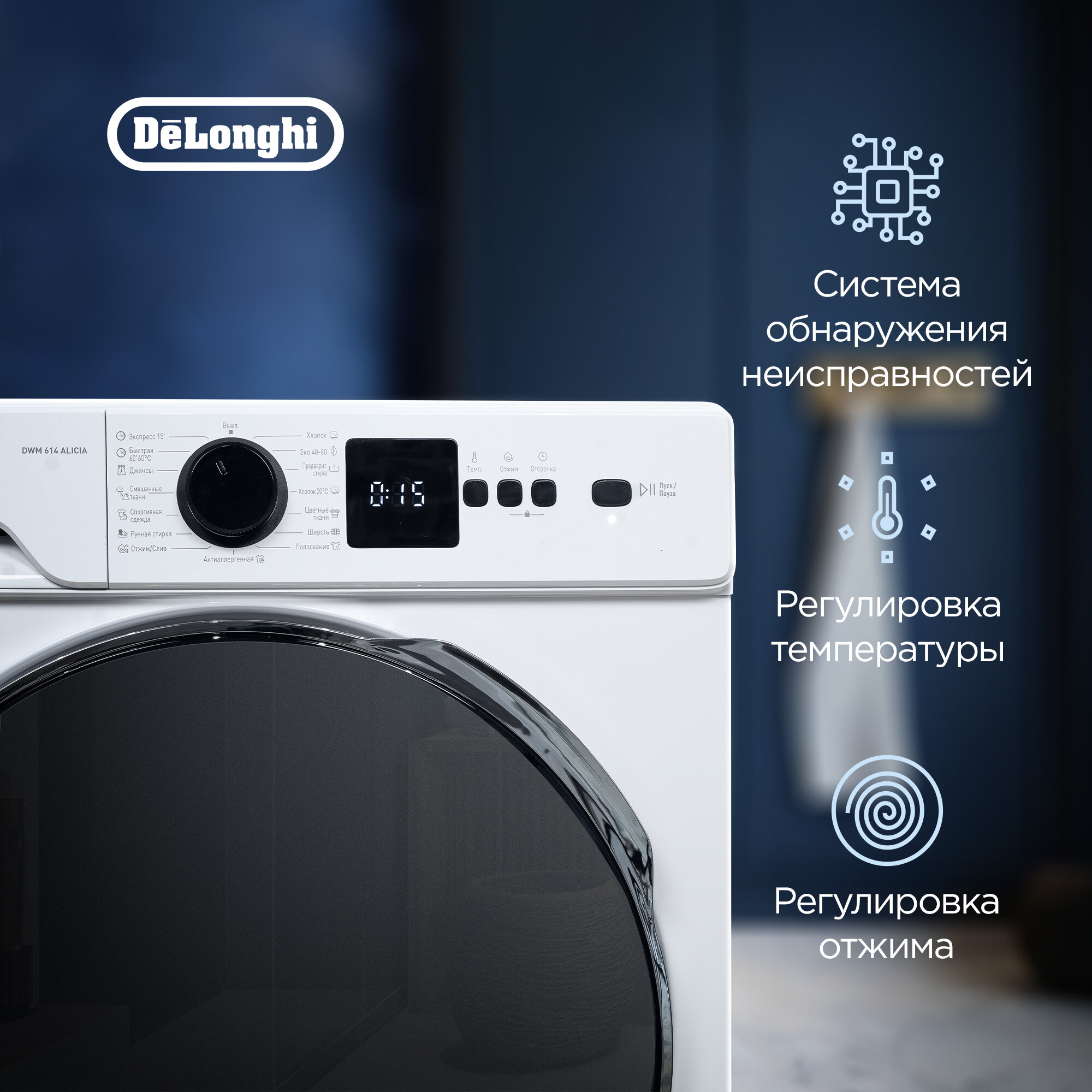 Стиральная машина DeLonghi "Alicia" DWM 1135, 15 программ, функция пара, загрузка 10,5 кг, инверторный мотор