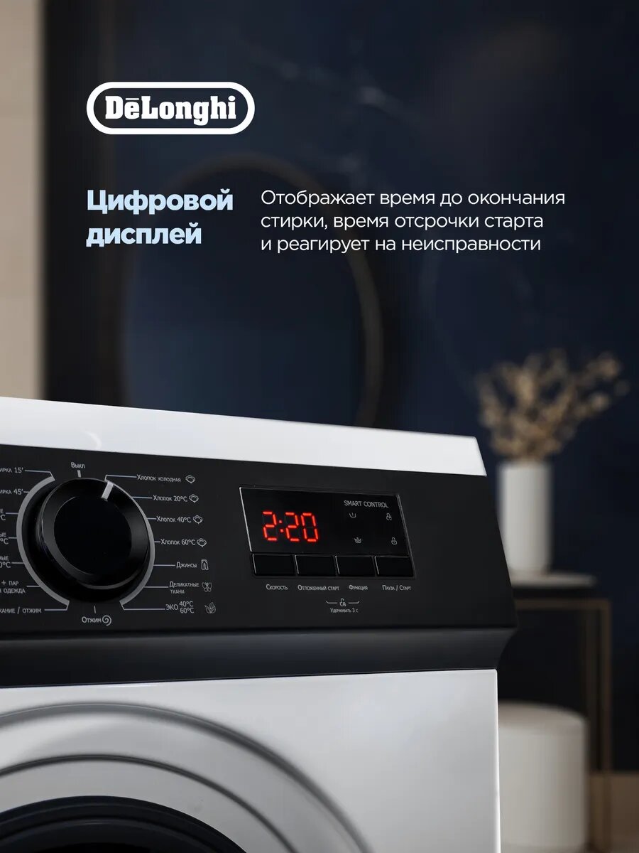 Стиральная машина DeLonghi DWM 724 ALICIA 53 см, 7 кг, отсрочка старта, 15 программ, половинная загрузка Eco-Logic