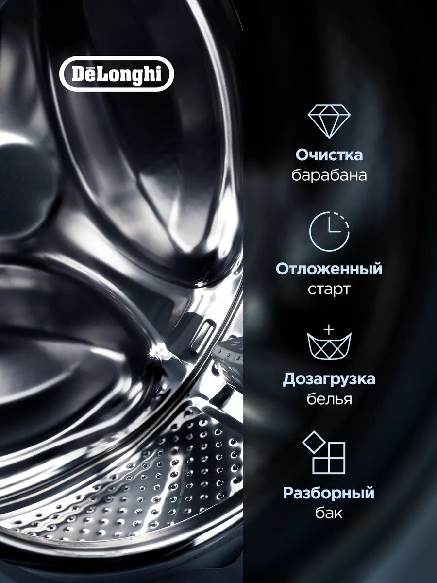Стиральная машина DeLonghi "Alicia" DWM 1135, 15 программ, функция пара, загрузка 10,5 кг, инверторный мотор
