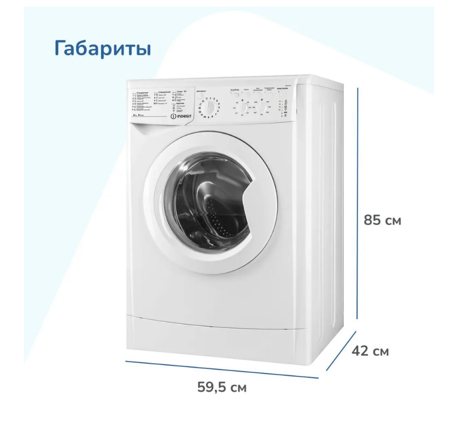 Стиральная машина INDESIT (5 кг), 1000 об/мин, LED+, инверторный мотор, Push & Wash, Датчик баланса воды, 16 программ