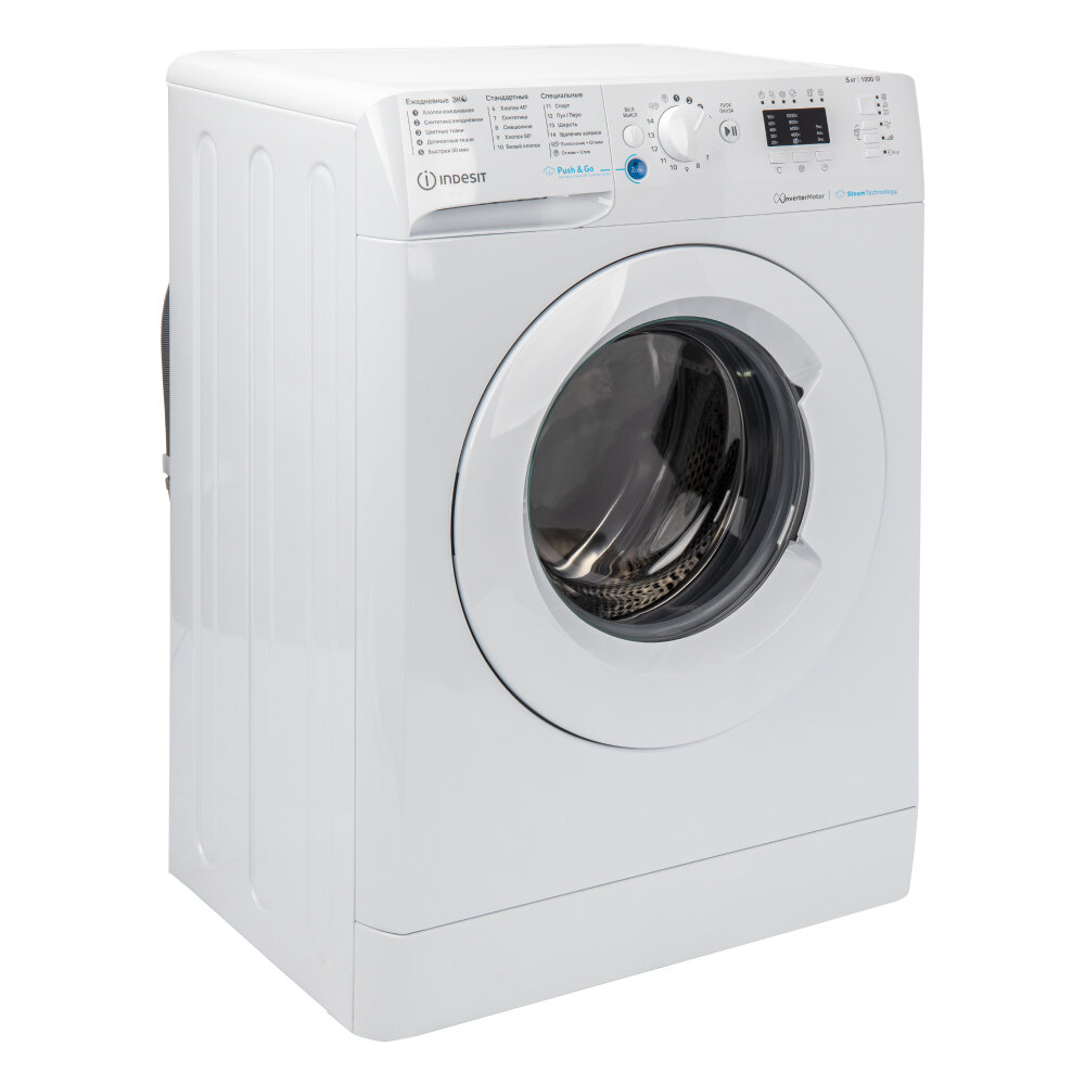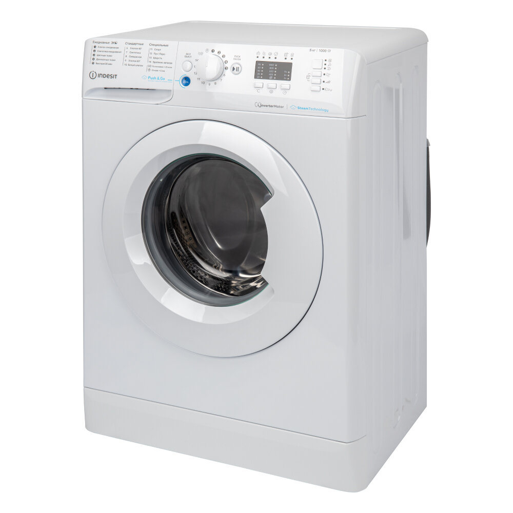 Купить Стиральная машина INDESIT (5 кг), 1000 об/мин, LED+, инверторный мотор, Push & Wash, Датчик баланса воды, 16 программ