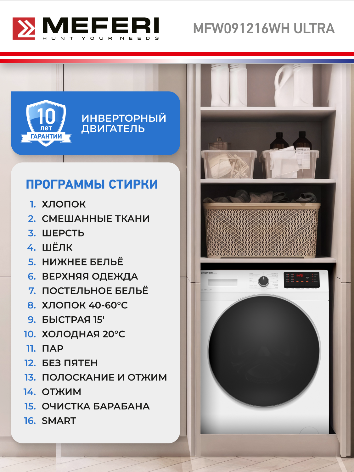 Стиральная машина с инвертором и паром отдельностоящая MFW091216WH ULTRA интересное: