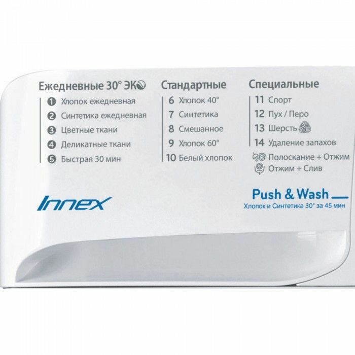 | Программы | быстрая стирка / стирка деликатных тканей / стирка синтетики / стирка смешанных тканей / стирка хлопка / стирка шерсти / удаление пятен |