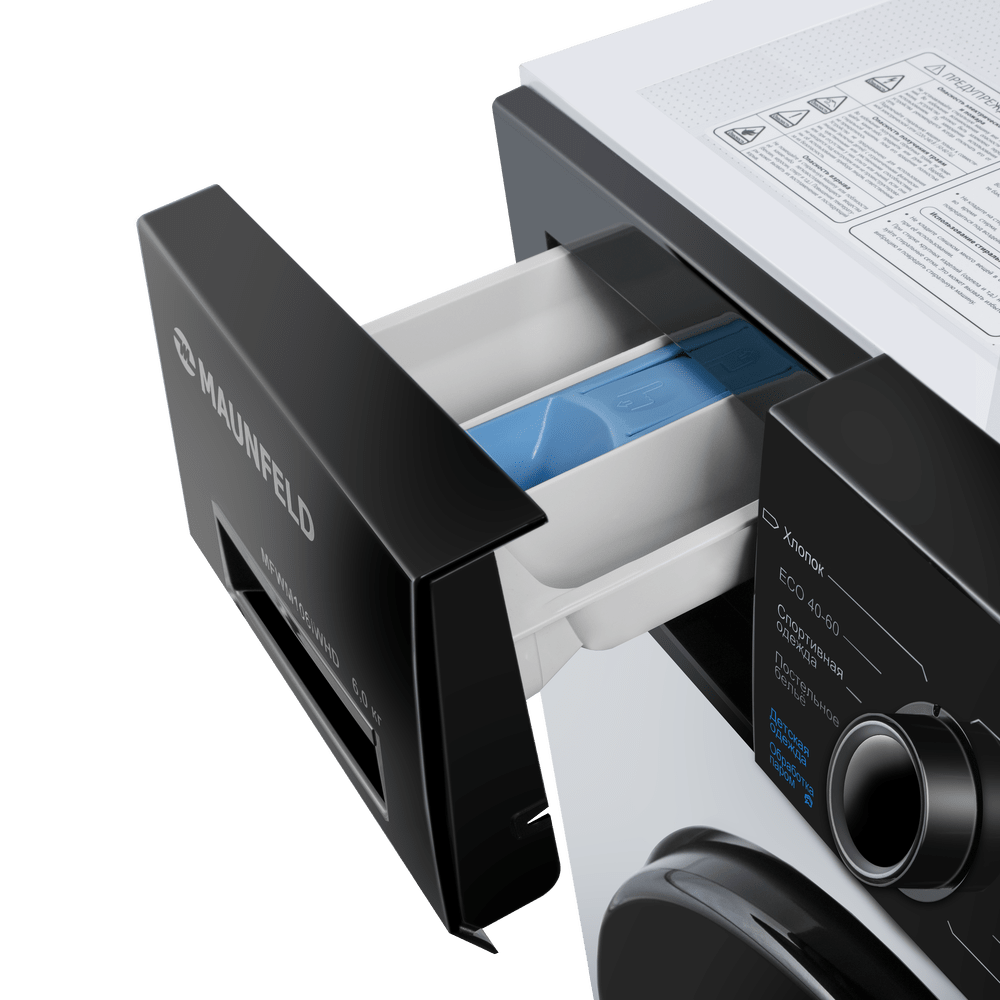Стиральная машина c инвертором и паром MAUNFELD MFWM106IWHD, 6 кг загрузка, 1000 об/мин, узкая, глубина 46,5 см интересное: