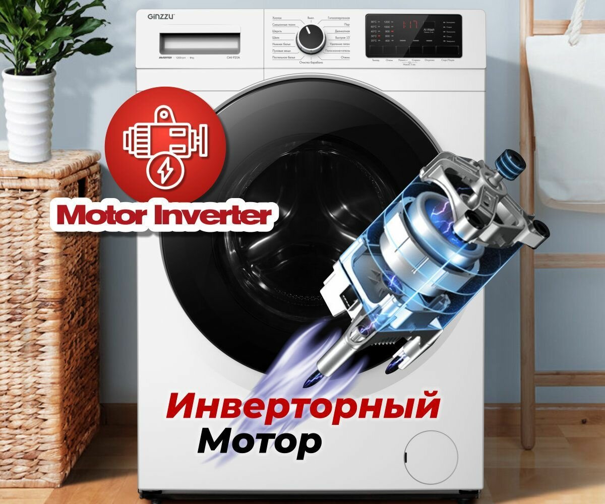 Стиральная машина Ginzzu CMI-920A с функцией Пар и Инверторным двигателем интересное: