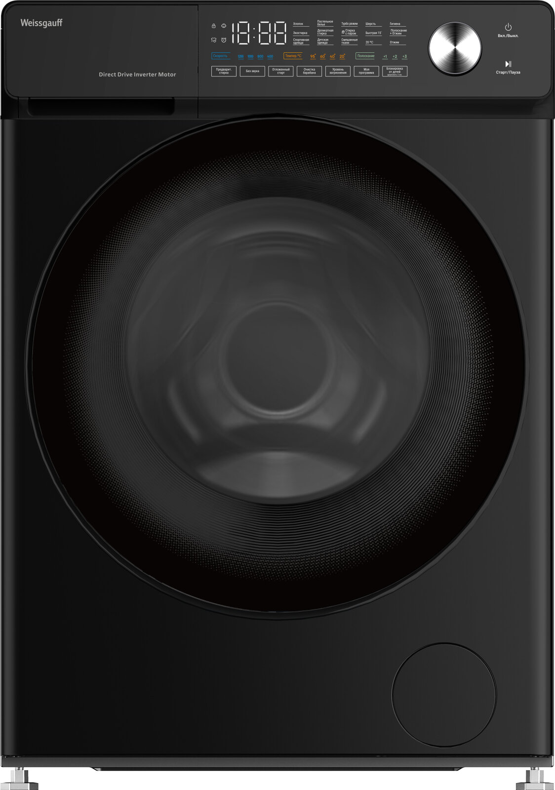 Cтиральная машина с прямым приводом, инвертором и паром Weissgauff WM 45126 Steam Direct Drive Matt Black интересное: