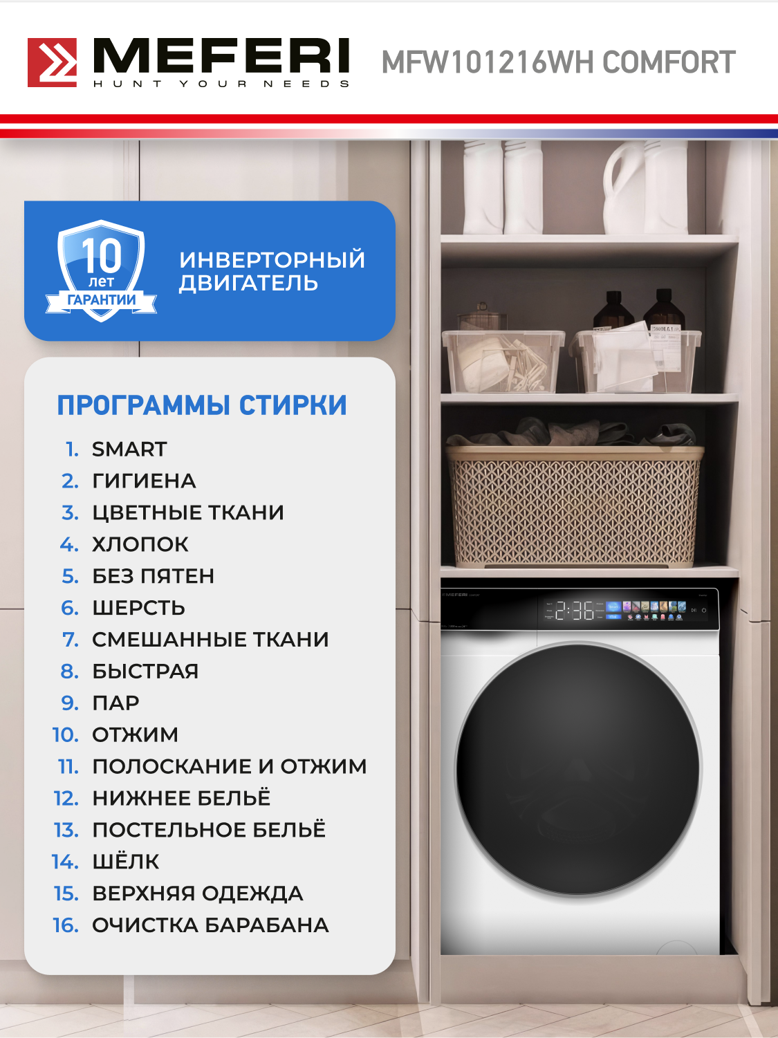 Стиральная машина с инвертором и паром отдельностоящая MFW101216WH COMFORT интересное: