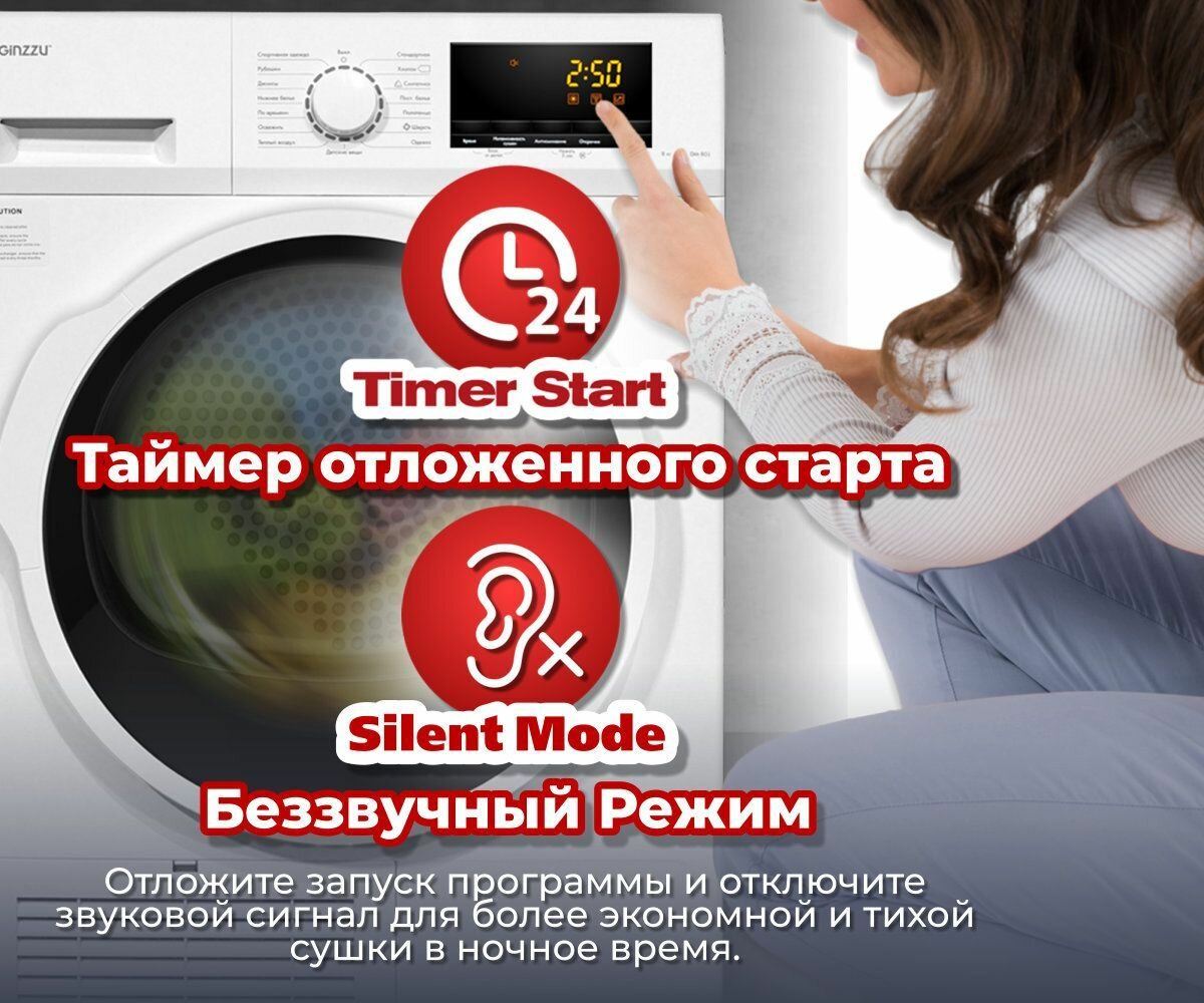 Сушильная машина Ginzzu DM-801, 8kg, белая интересное: