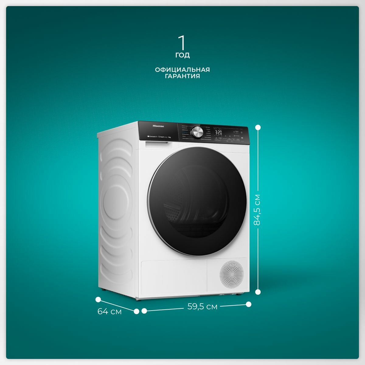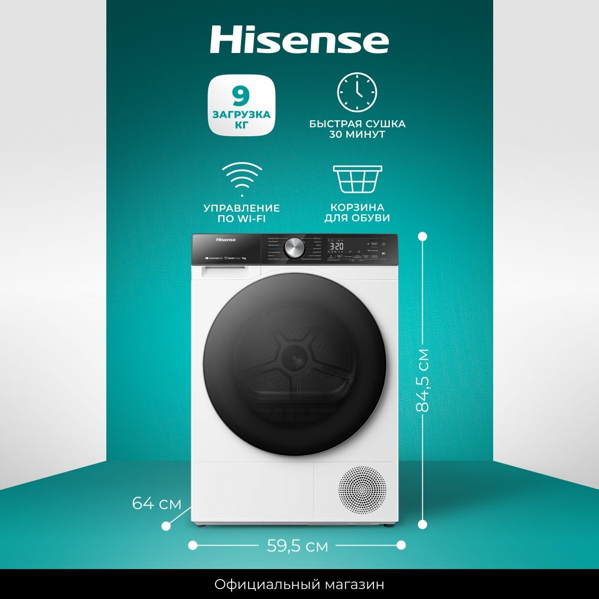 Купить Сушильная машина Hisense DH5S902UW2 с тепловым насосом, 9 кг, управление по Wi-Fi, 17 программ, технология Ion Освежение