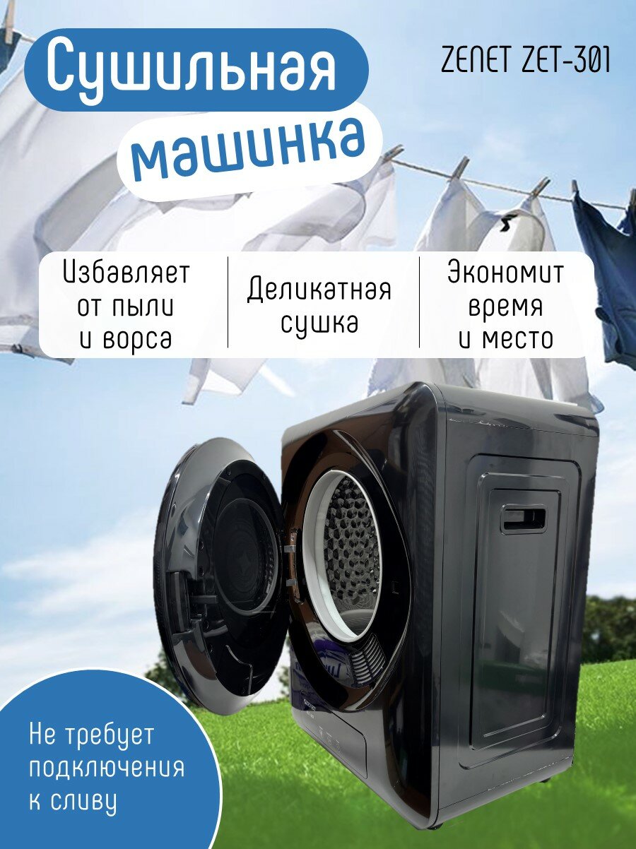 Машина для сушки ZENET ZET-302 (черная), компактная, турбосушка, 4кг интересное: