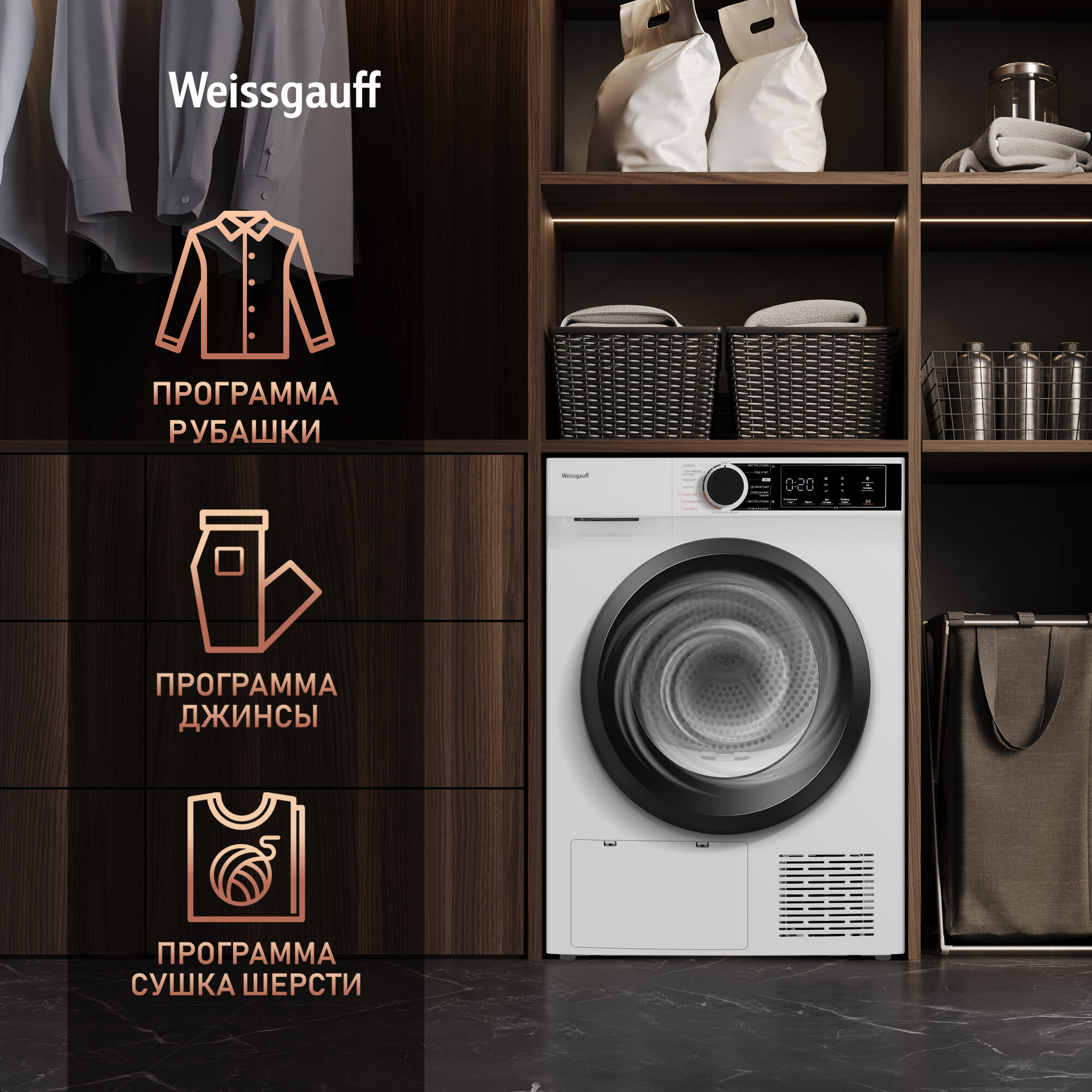 Сушильная машина c ультрафиолетом Weissgauff WD 5948 Heat Pump интересное:
