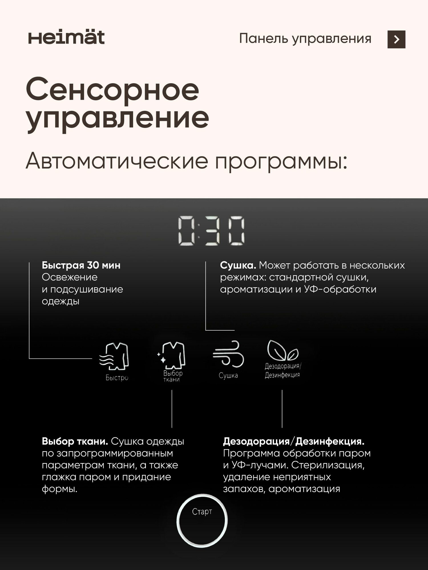 Паровой шкаф для одежды Heimat HM-CCM175MS34DAB Сушильный шкаф с функцией обработки паром интересное: