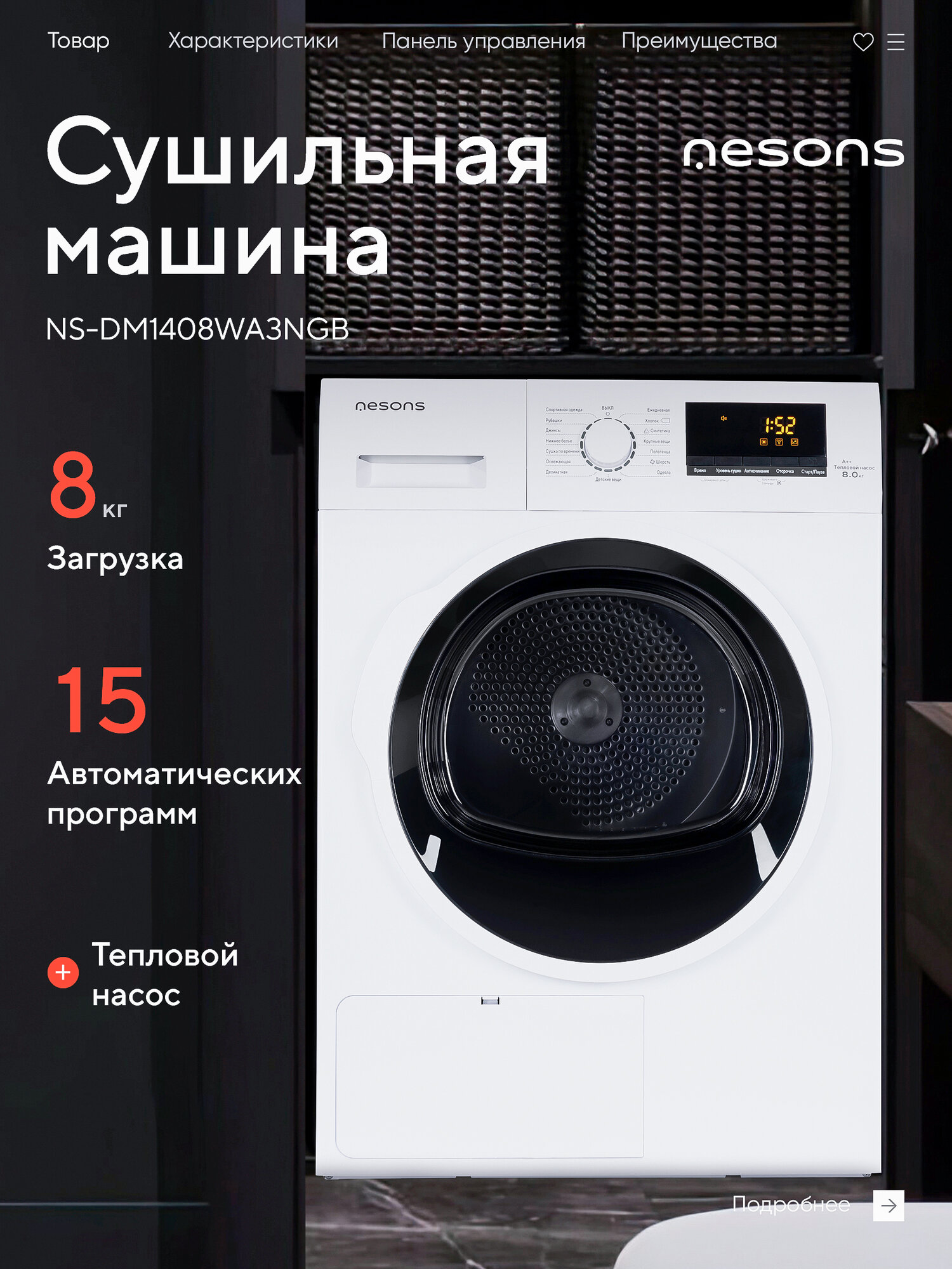 Сушильная машина Nesons NS-DM1408WA3NGB (с тепловым насосом) интересное: