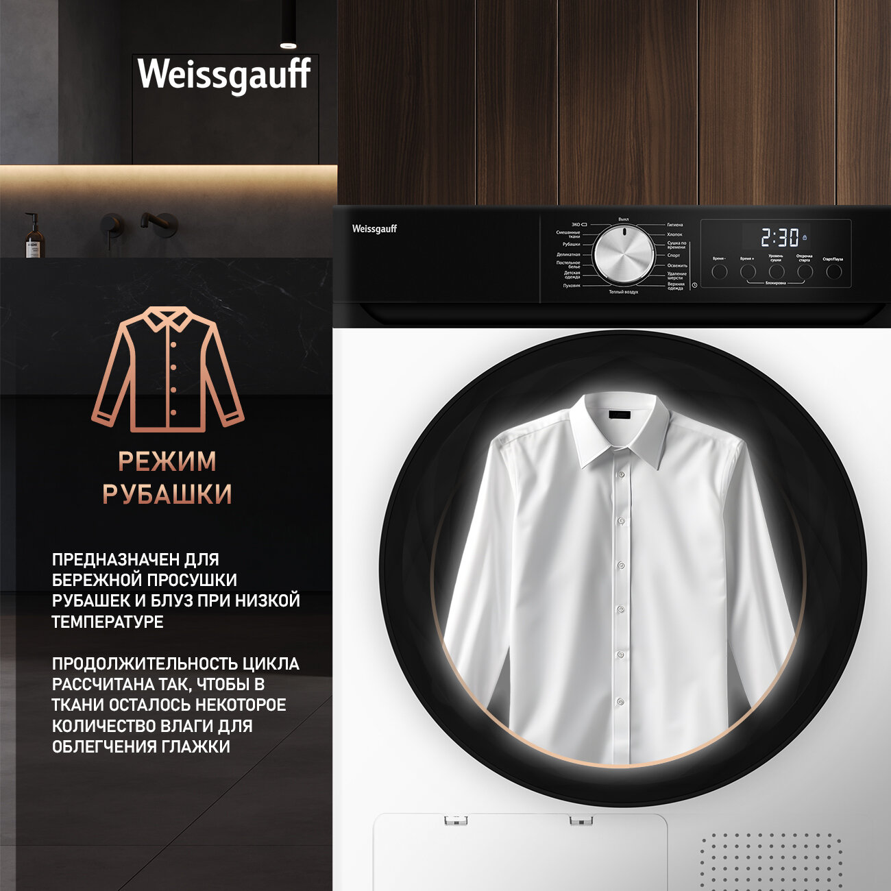 Сушильная машина Weissgauff WD 6010 Heat Pump, Тепловая помпа, Загрузка 10 кг, Сушка по остаточной влажности интересное: