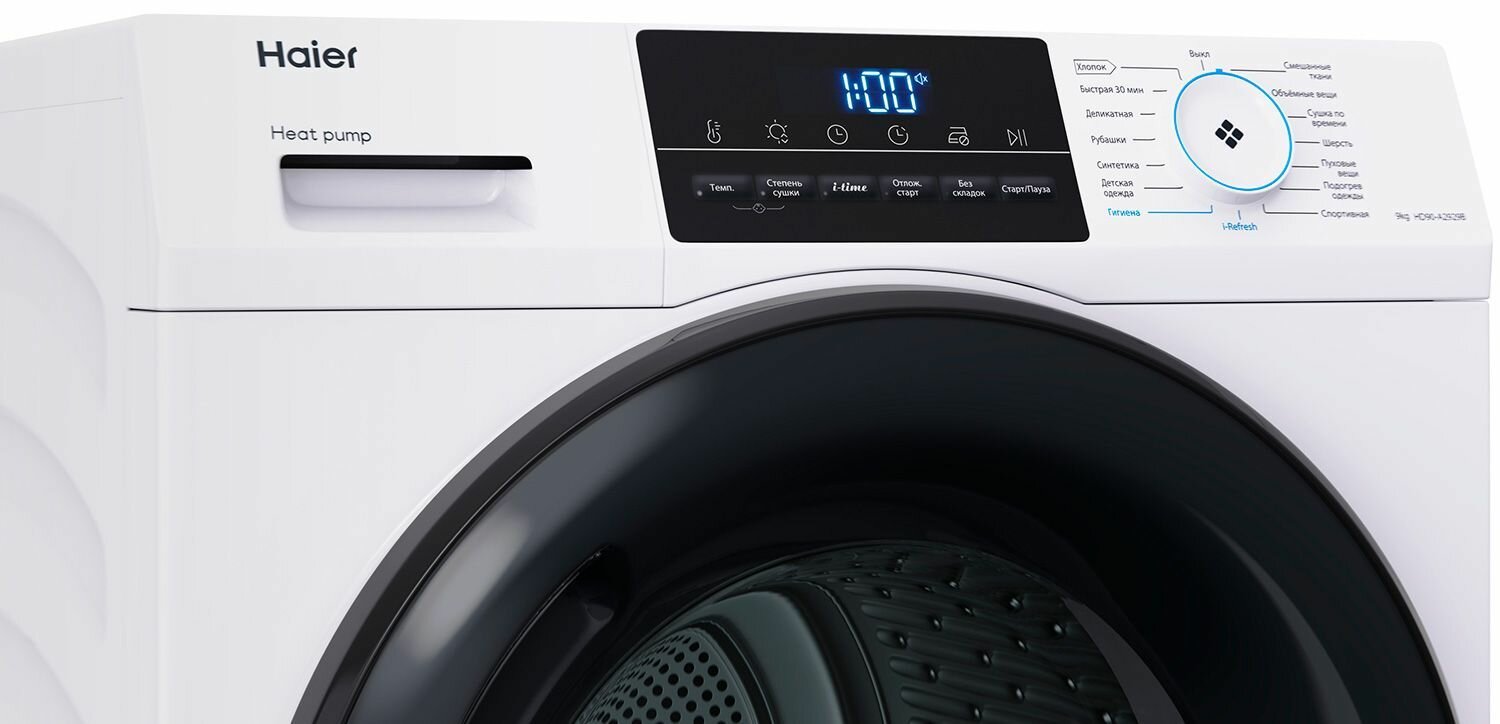 Сушильная машина Haier HD90-A2929B, с тепловым насосом, загрузка 9 кг, 15 программ, белая интересное: