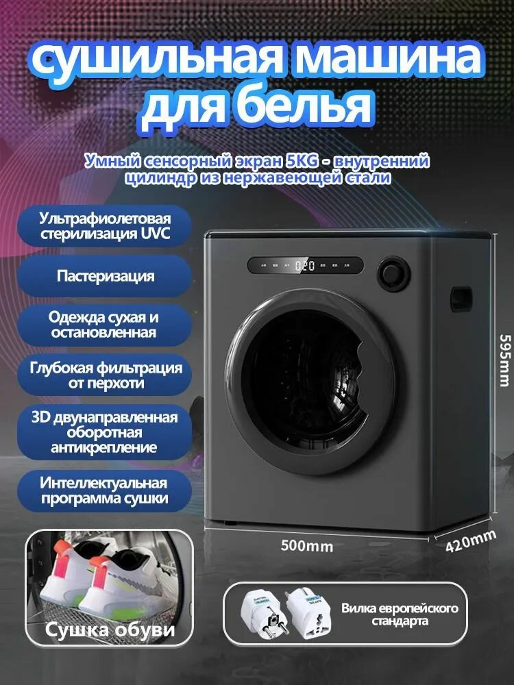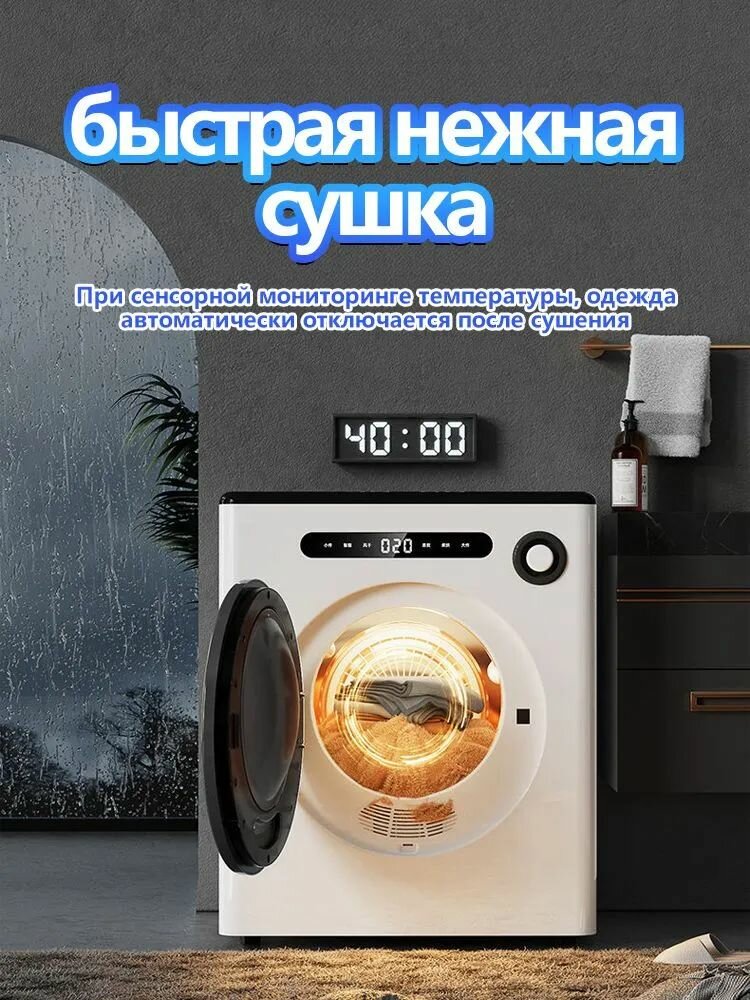 Сушилка для белья Нет бренда, загрузка 5кг, 6программ, сенсорное управление, подсветка барабана интересное: