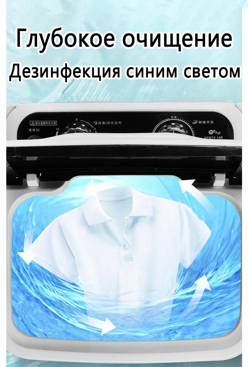 Стиральная машина с Функцией обезвоживания, стерилизация синим светом,7кг загрузки,300Вт Мощность интересное: