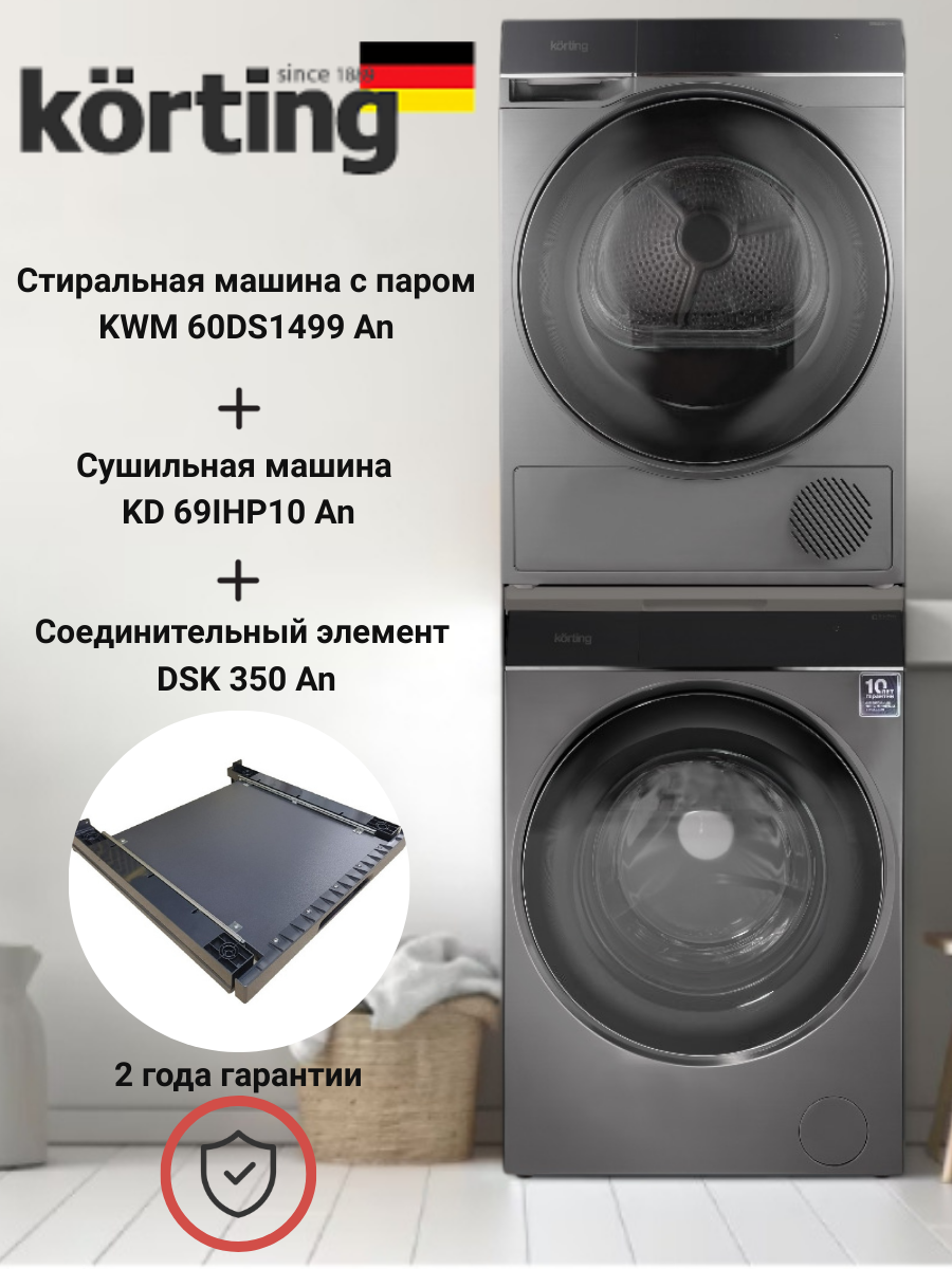 Korting Комплект стиральная и сушильная машина в колонну (KWM 60DS1499 An+KD 69IHP10 An+DSK 350 An) интересное: