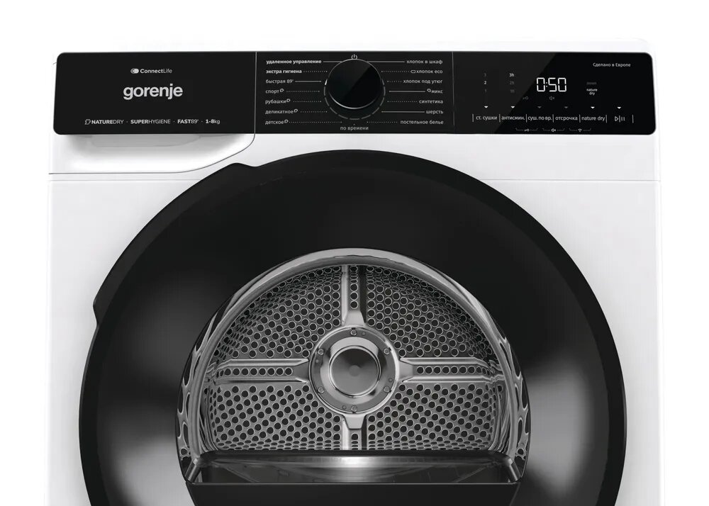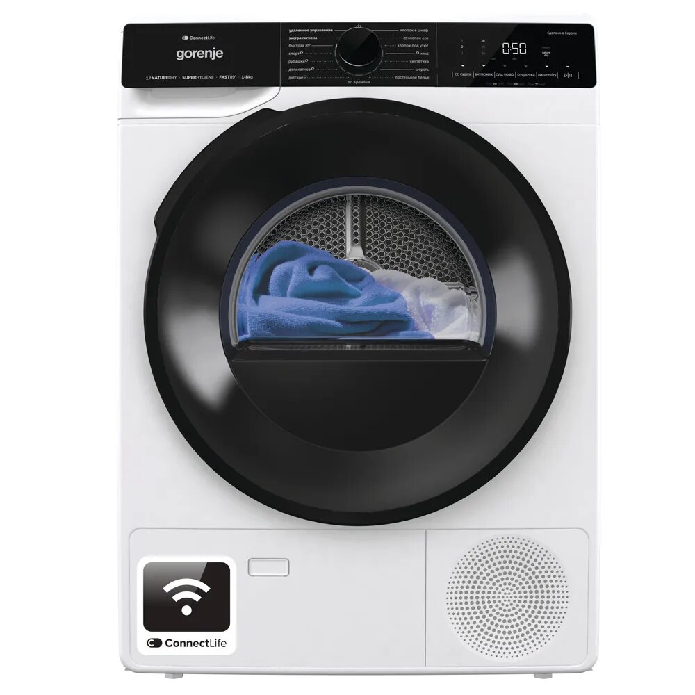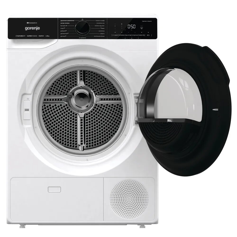 Сушильная машина Gorenje DPNA82WIFI/C белый корпус, черный люк, максимальная загрузка 8 кг, электронное управление интересное: