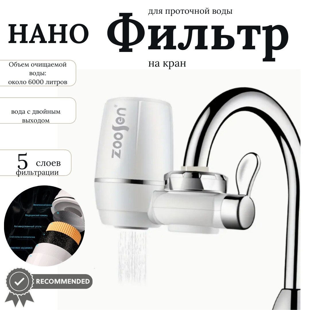 Купить Нано-фильтр для проточной воды на кран / Фильтр насадка на кран для очистки и смягчения воды / 5 слоев фильтрации