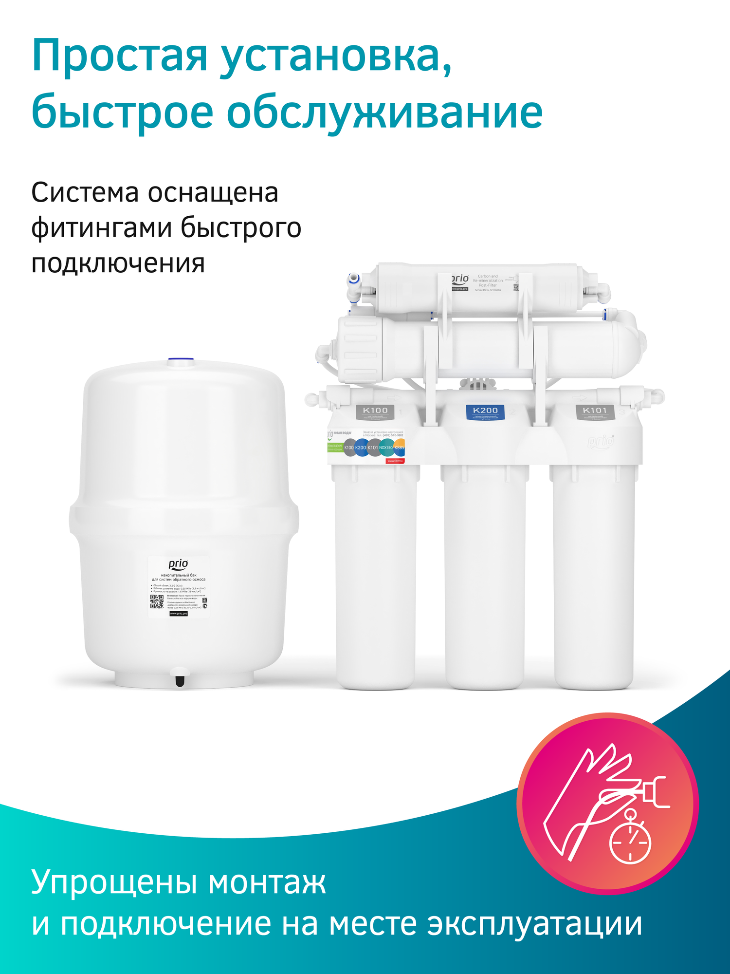 Фильтр для воды под мойку система обратный осмос Prio OU480M, 150GPD, 5 ступеней, SL 10" - тотальный барьер от гейзера загрязнений