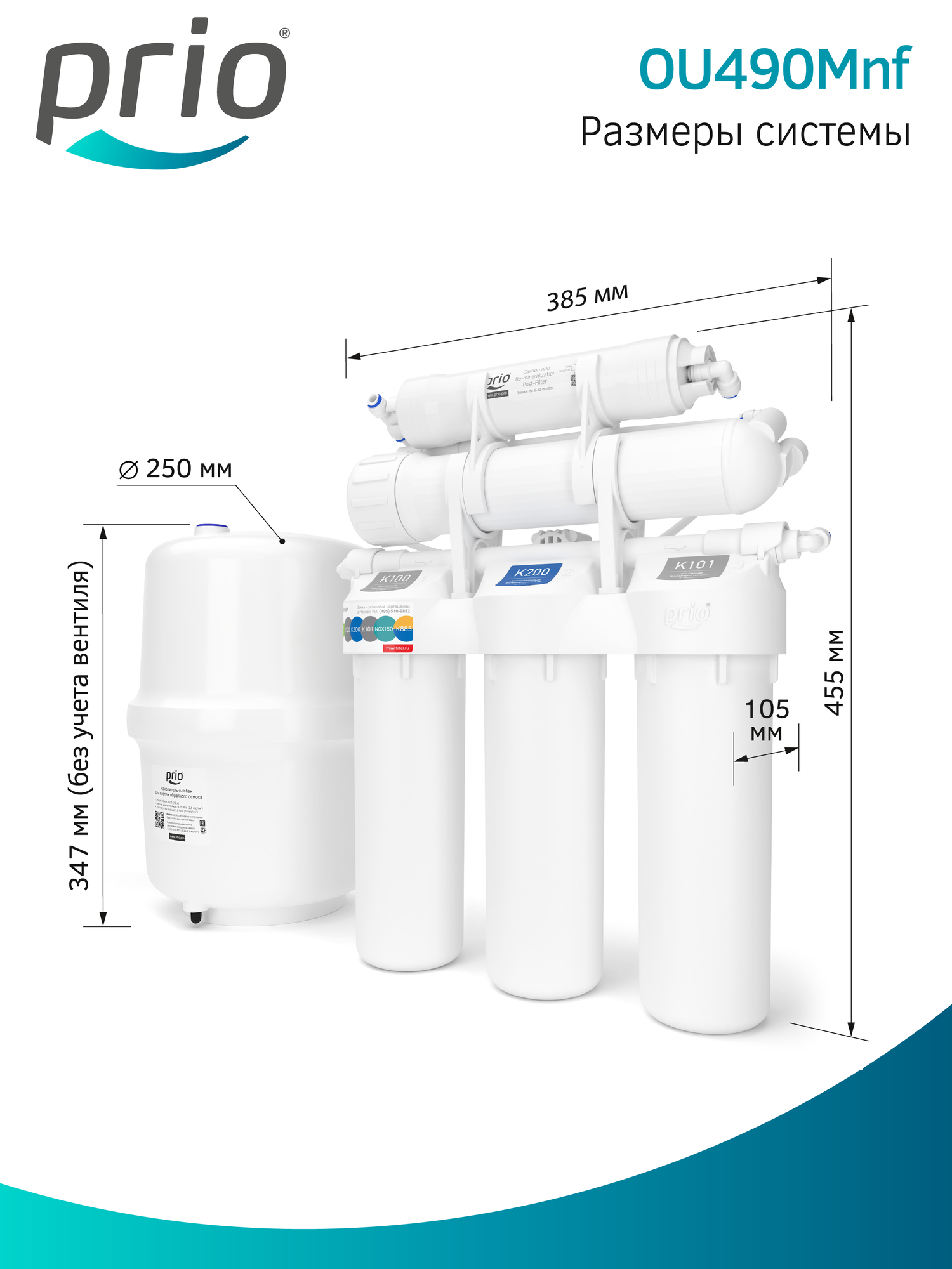 Фильтр с обратным осмосом и минерализатором Prio OU490nf (без крана чистой воды), 6 ступеней, Slim Line 10"