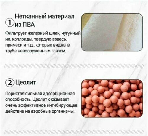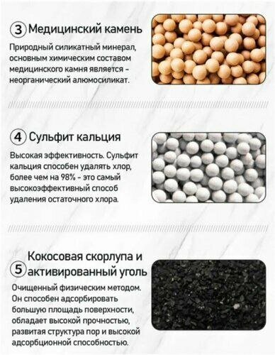 | Функции очистки | механическая фильтрация / обезжелезивание / очистка от бактерий / очистка от ржавчины / очистка от свободного хлора / угольная фильтрация |