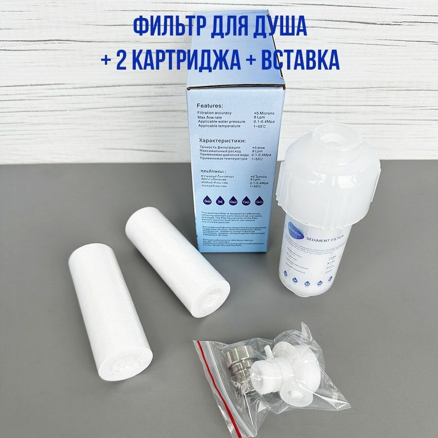 Фильтр для душа от жесткой воды + 2 картриджа + вставка (многоразовый). интересное: