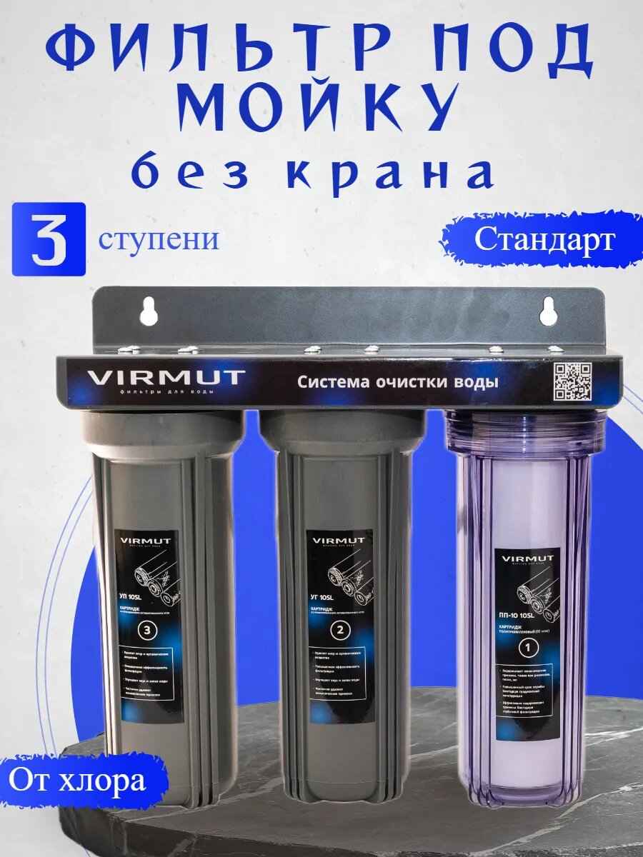 Фильтр для воды под мойку без крана Трио Стандарт Virmut кухонный трёхступенчатый проточный фильтр интересное: