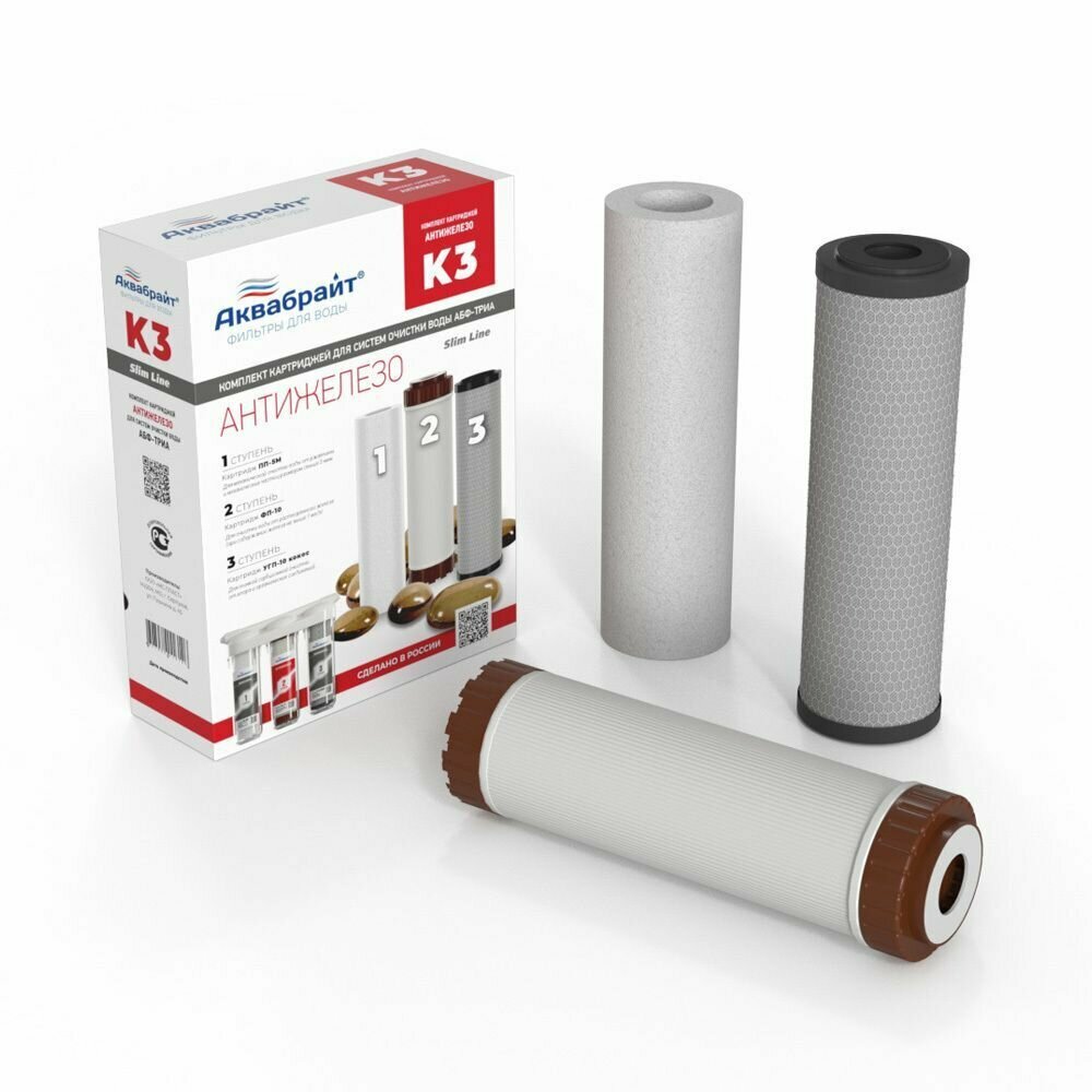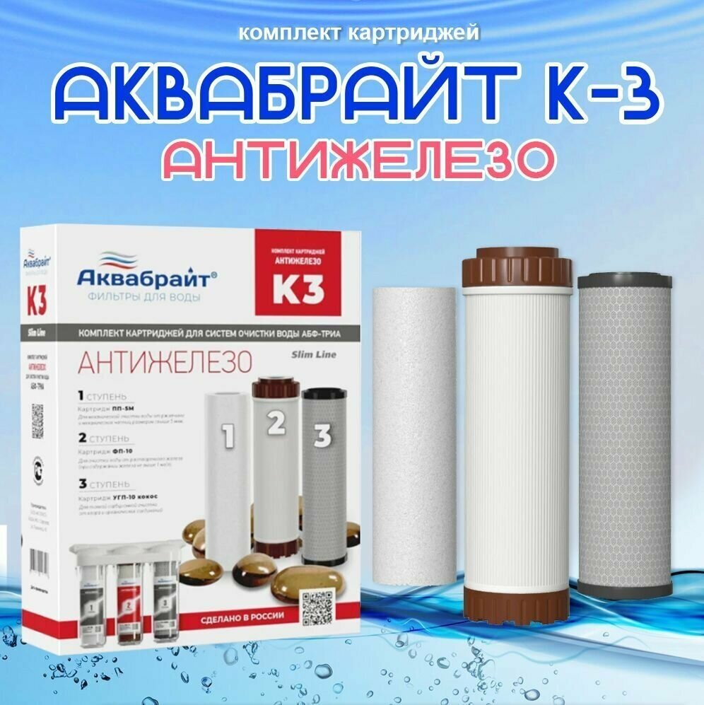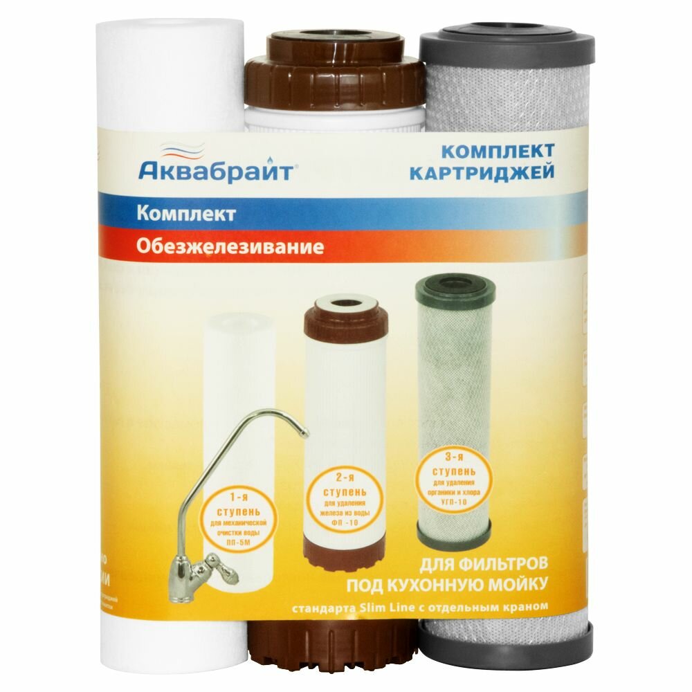Комплект картриджей К-3 аквабрайт обезжелезивание (Входит: ПП-5М, УГП-10, ФП-10) интересное: