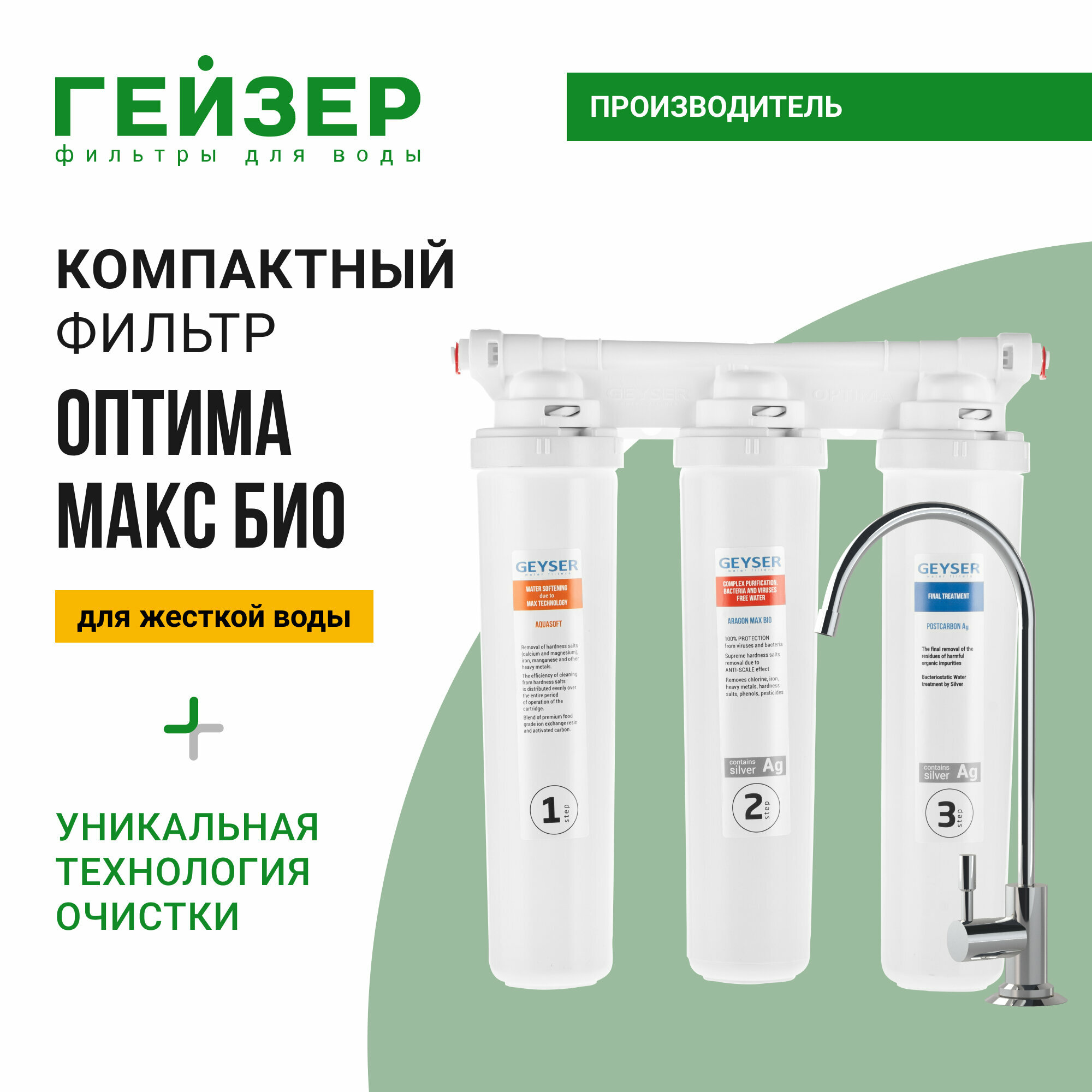 Фильтр для воды под мойку Гейзер Оптима Макс Био, с краном, до 100% удаление бактерий, вирусов и накипи, 16045 интересное: