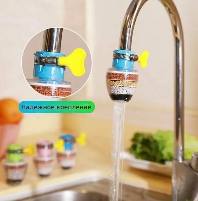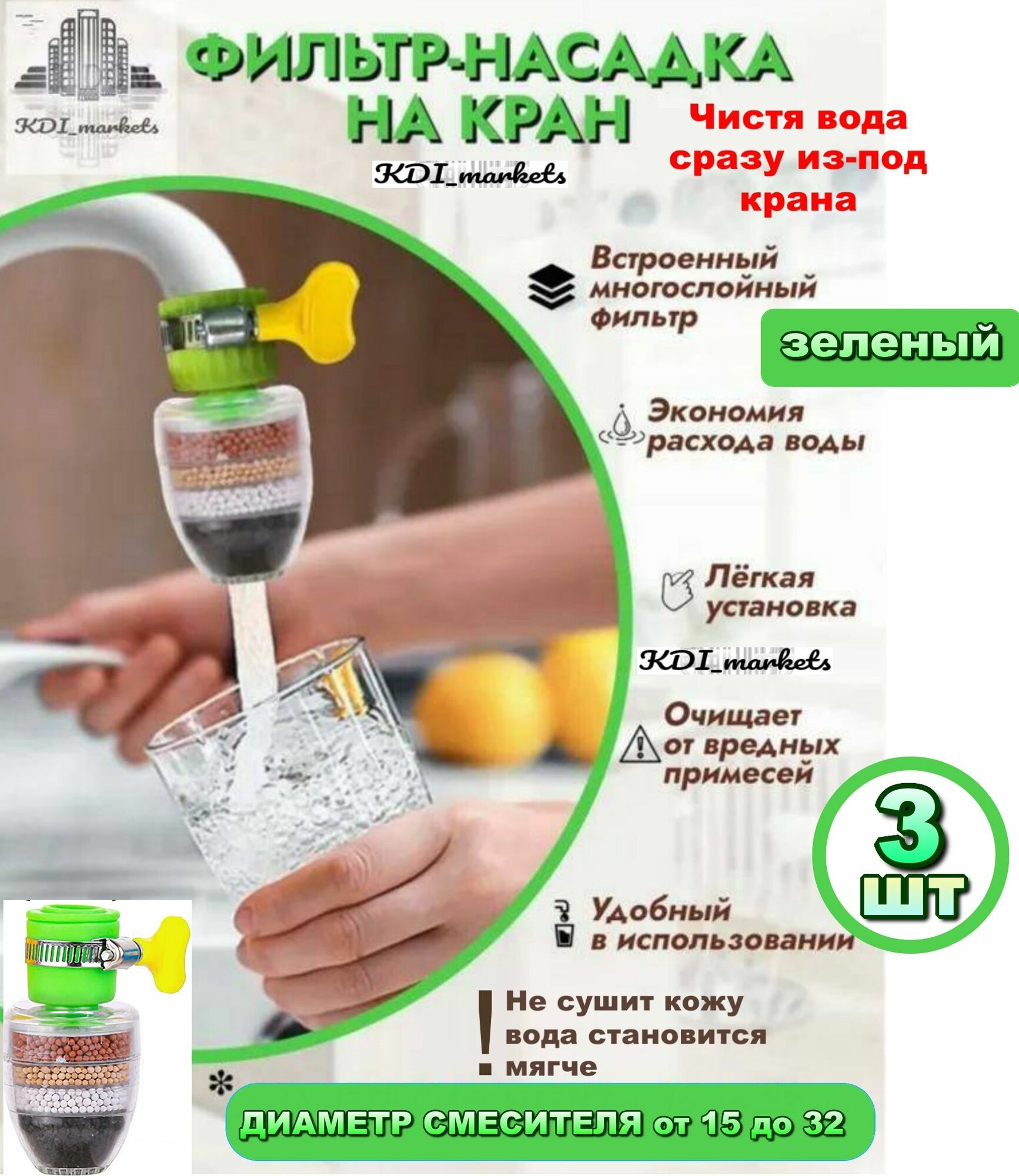 Универсальная насадка-фильтр на кран (зеленый) для очистки и фильтрации воды - 3 шт интересное: