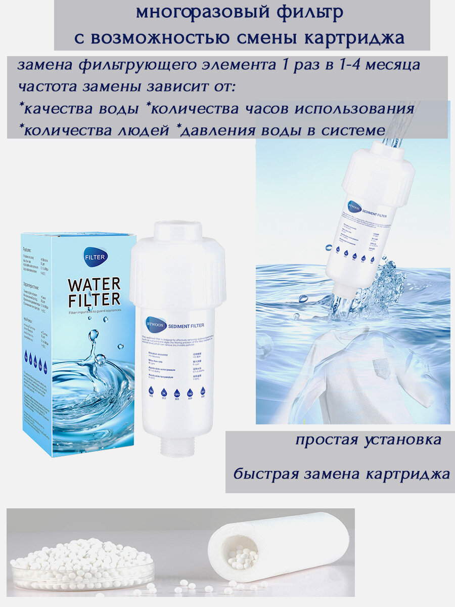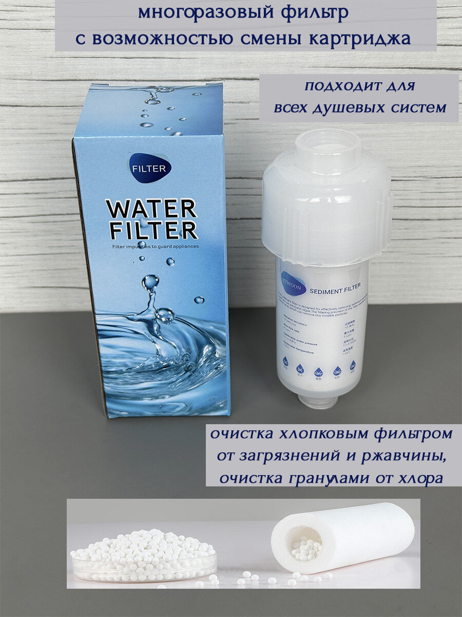 Фильтр для душа, многоразовый, механическая очистка воды (с гранулами). интересное: