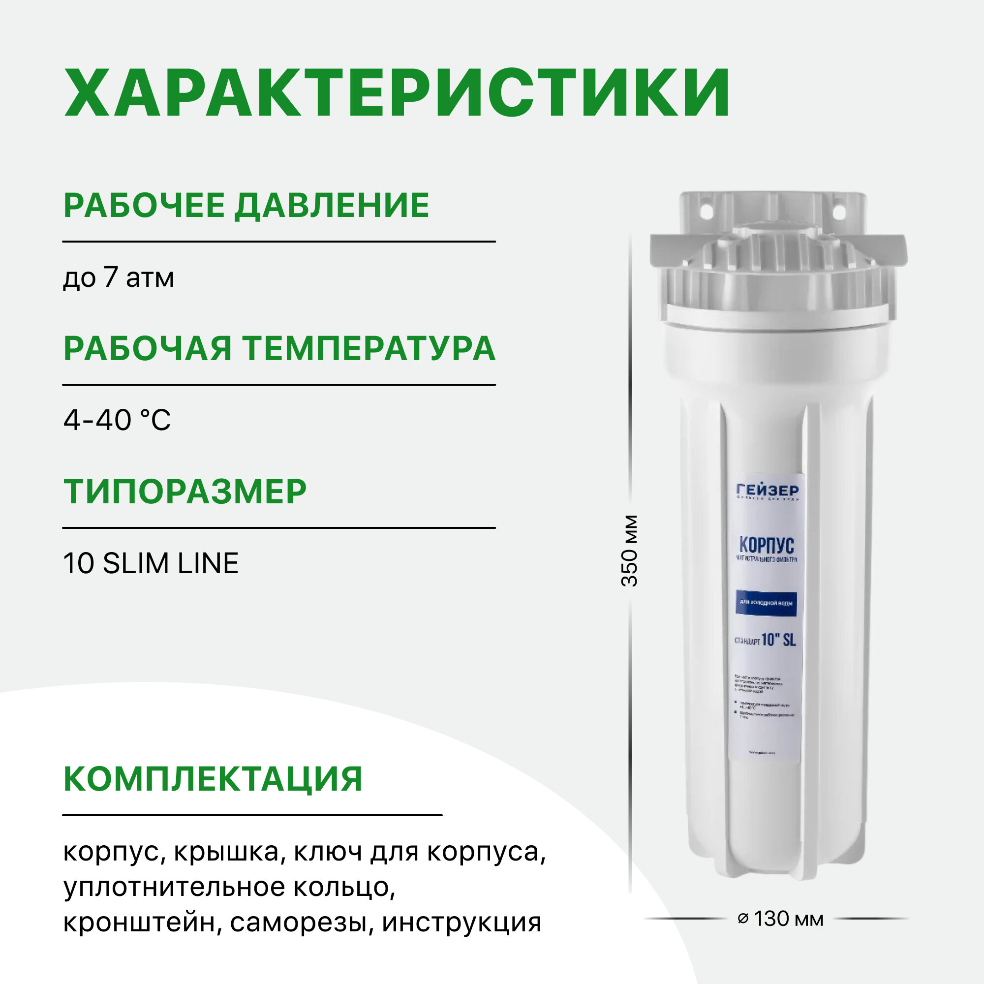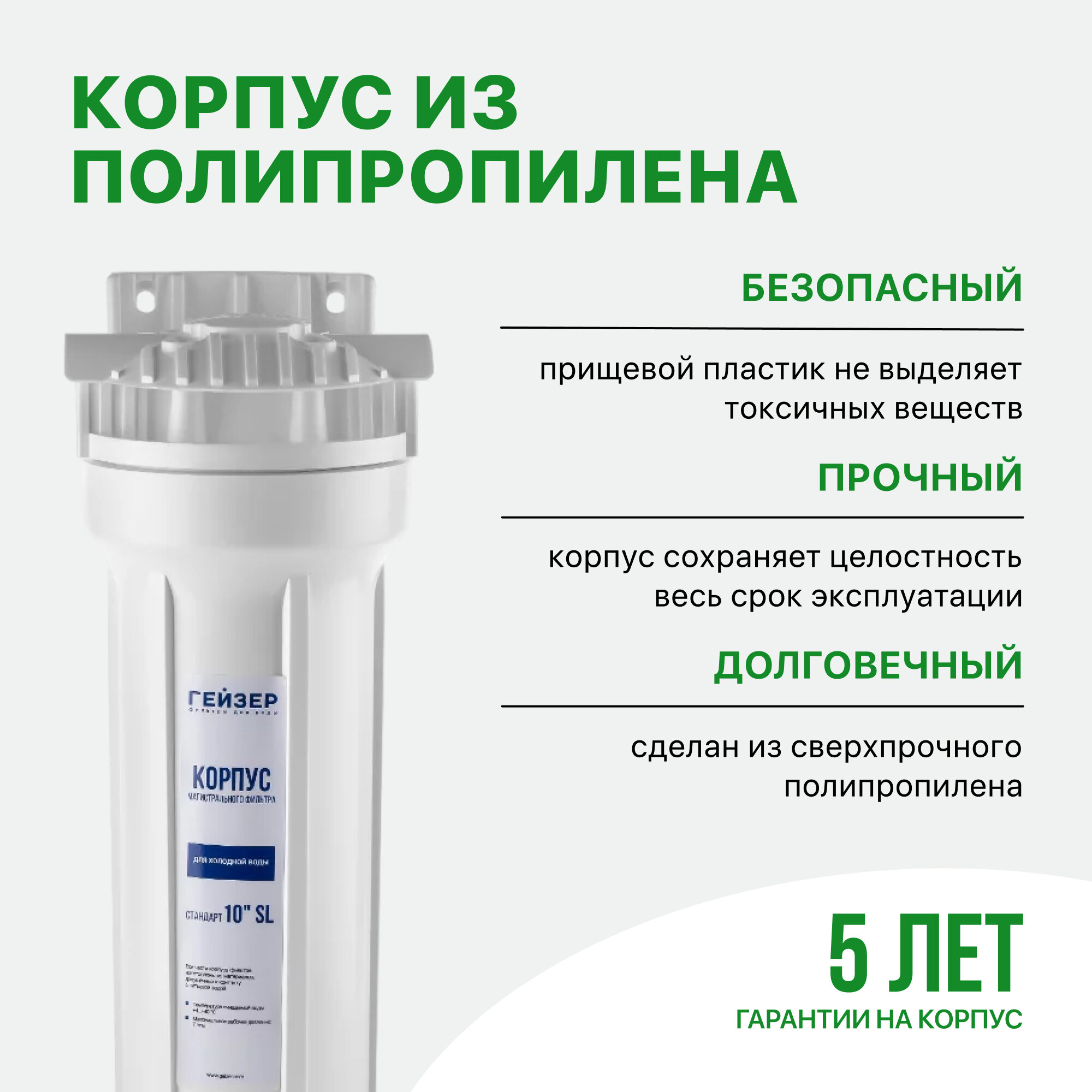 Корпус магистрального фильтра Гейзер 10SL 1/2", для холодной воды, защита сантехники, бытовых приборов, 50544 интересное: