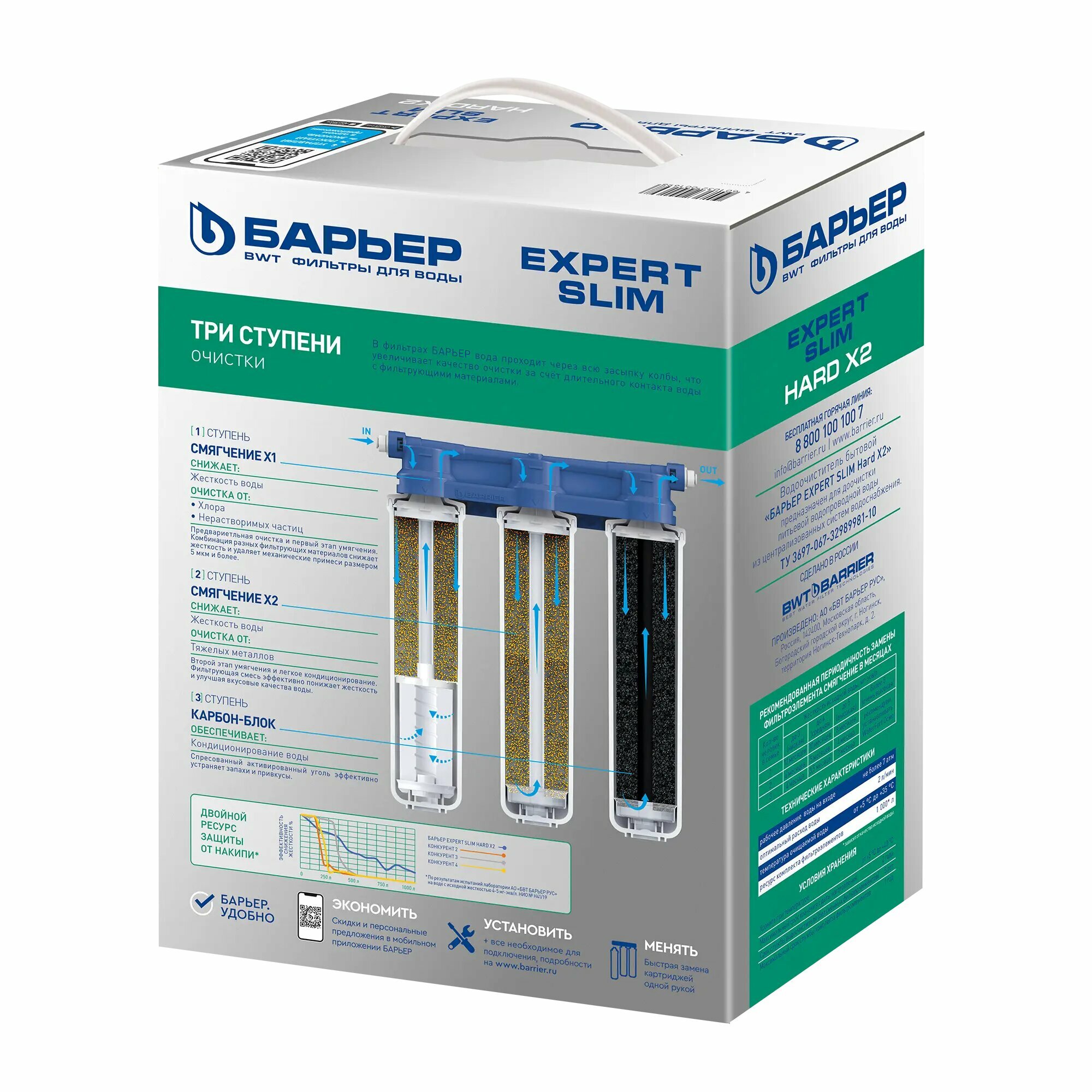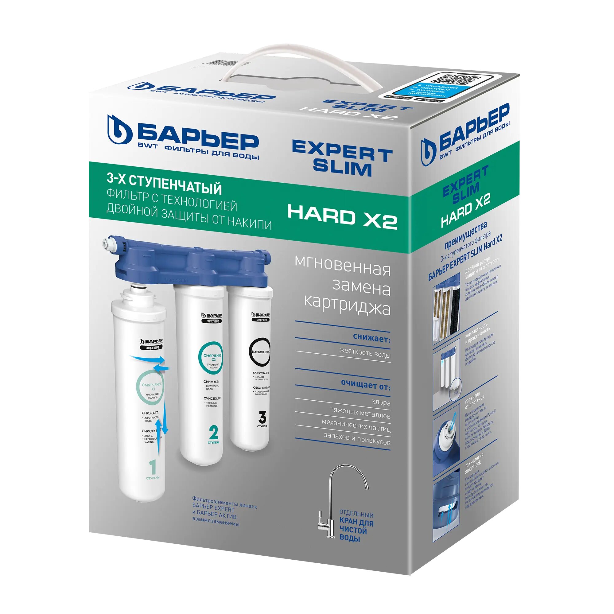 Фильтр под мойку Барьер Expert Slim Hard x2 для жесткой воды быстросъемный 3 ступени кран в комплекте интересное: