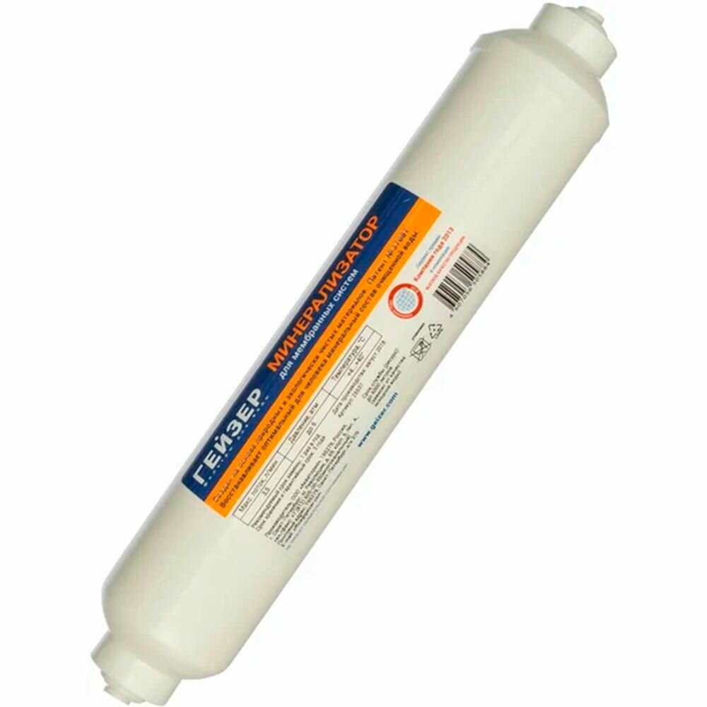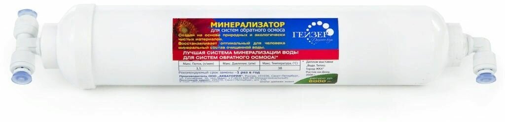 | Дополнительная информация | Минерализатор применяется для обогащения воды полезными минералами после установок обратного осмоса. Минерализатор B (RO) предназначен для обогащения полезными минеральными солями (магния и кальция) и микроэлементами воды, очищенной системой обратного осмоса. Минерализатор не подлежит восстановлению, после окончания ресурса заменяется на новый. |