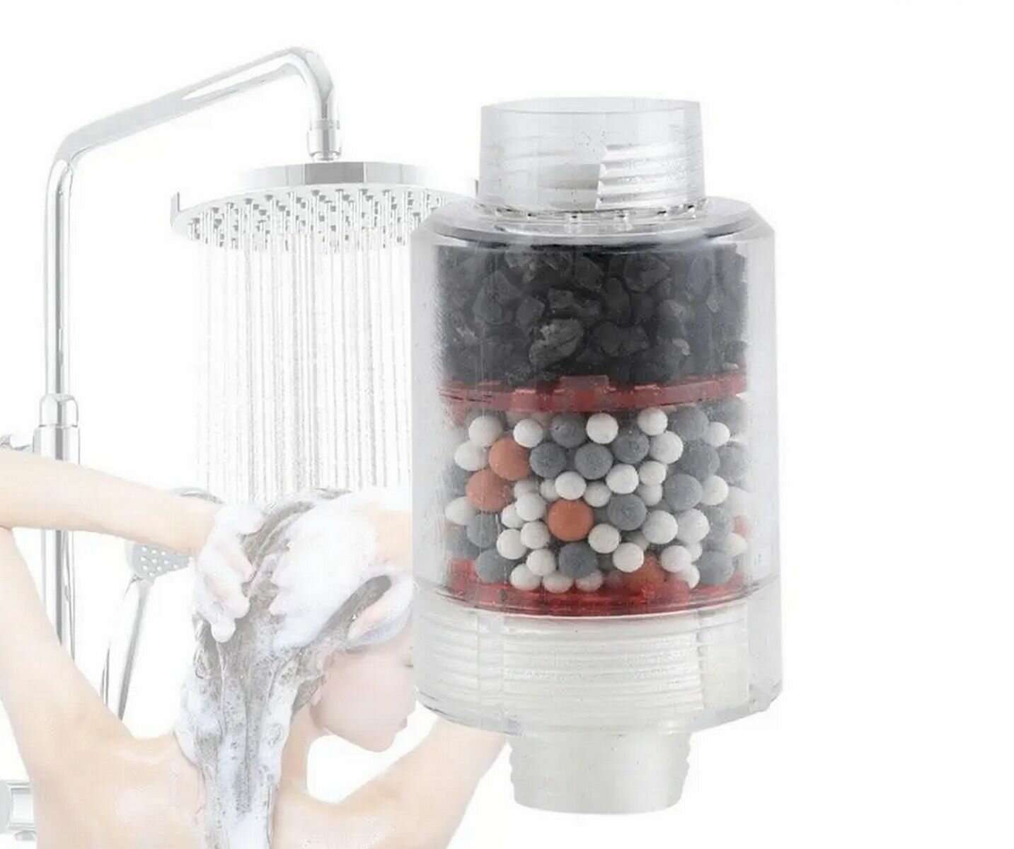 Мини фильтр для душа, смягчение воды, 2 уровня очистки, прозрачный корпус интересное:
