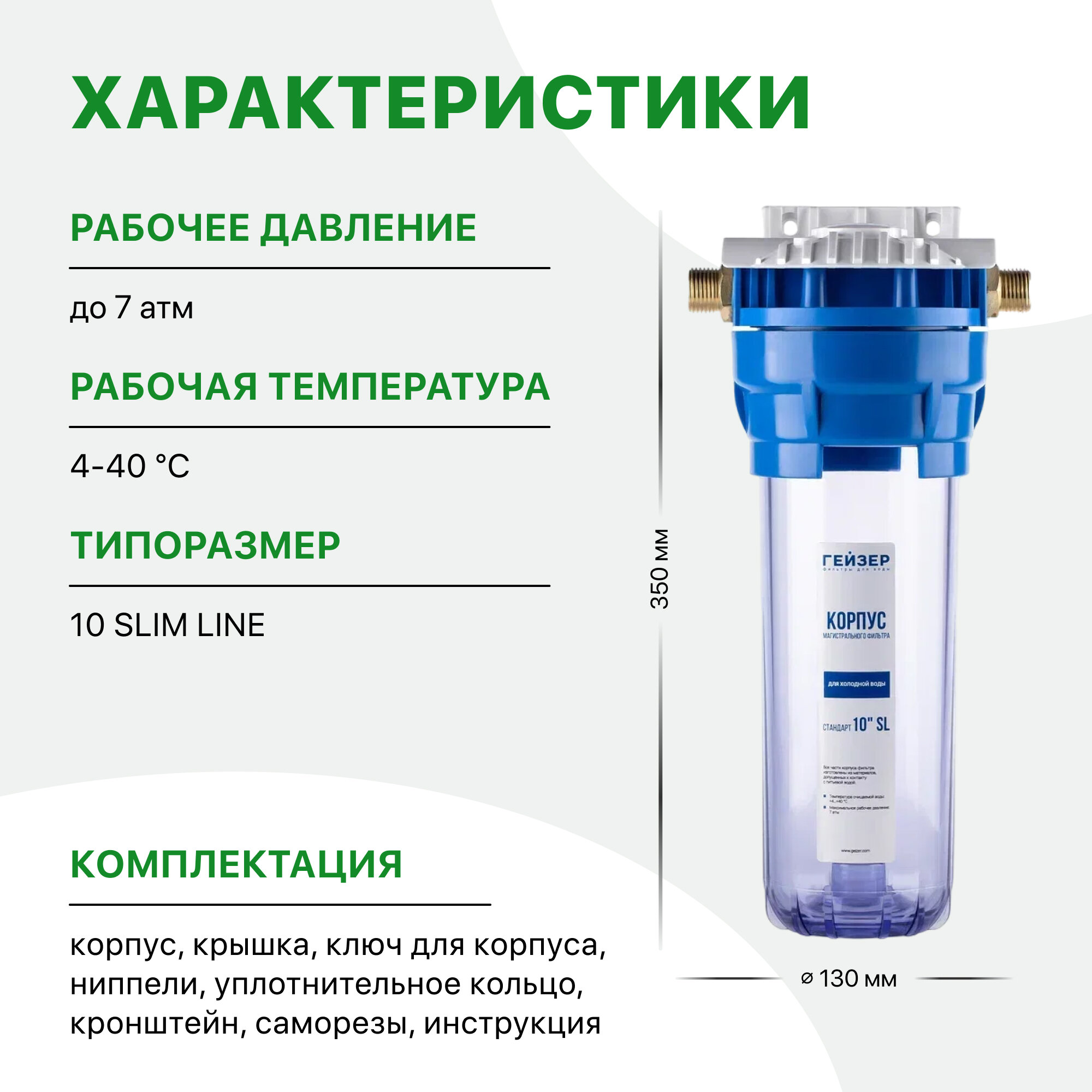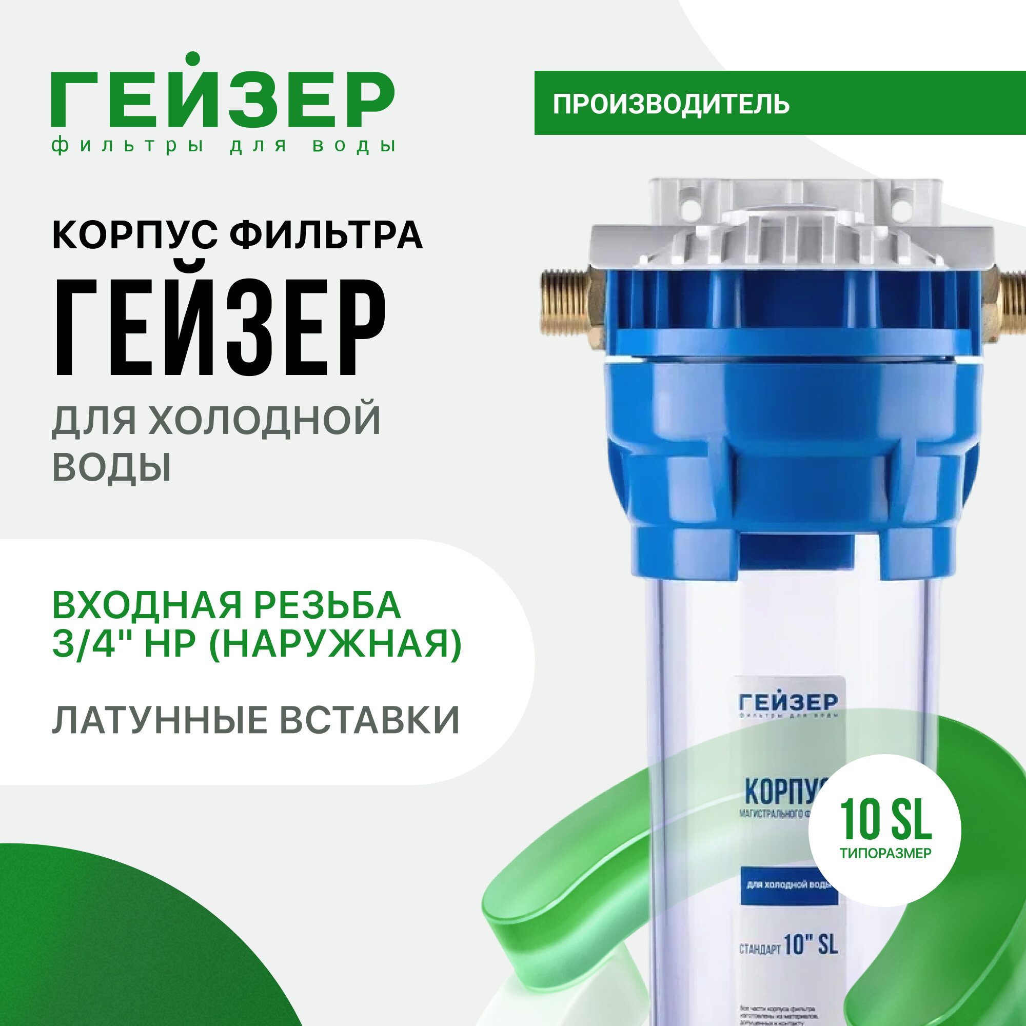 Корпус магистрального фильтра Гейзер 10SL 3/4", для холодной воды, защита сантехники, бытовых приборов, 50534 интересное: