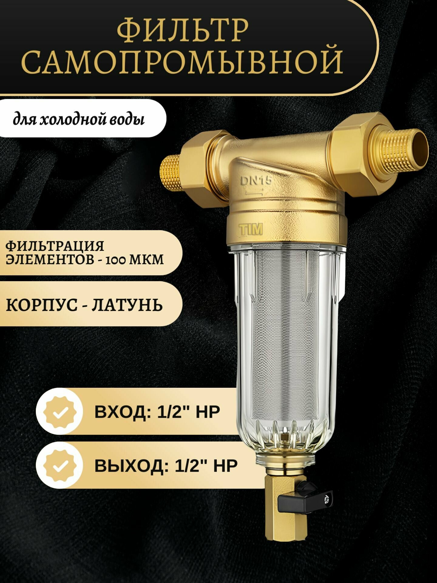 Фильтр самопромывной без манометра, прозрачная колба для холодной воды-1/2" TIM JH-1004 интересное:
