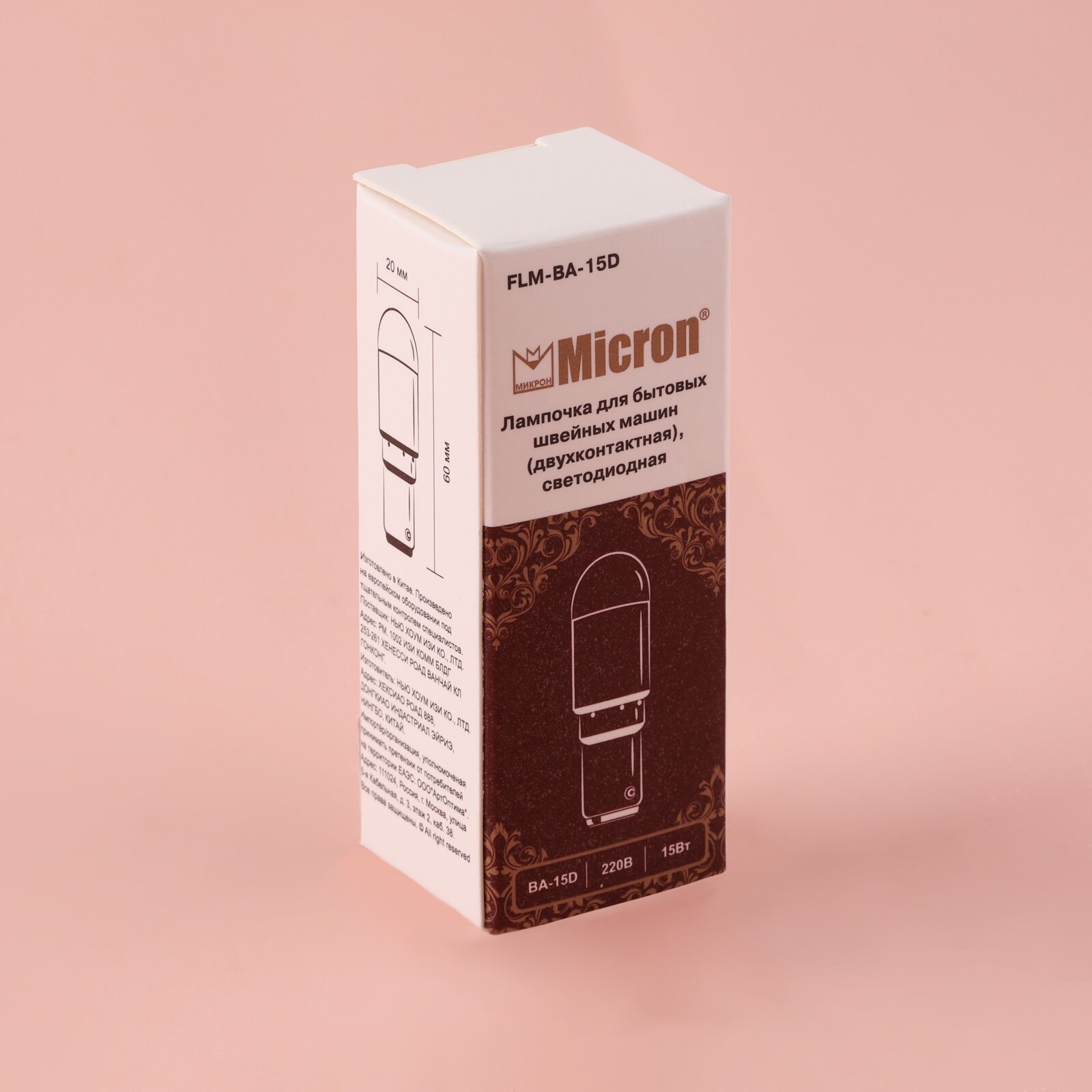 Лампочка для бытовых швейных машин светодиодная (двухконтактная), "Micron" FLM-BA-15D интересное: