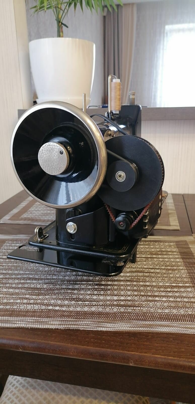 Шкив редуктора швейной машины 95мм х 35мм. Круглый ремень 5мм.