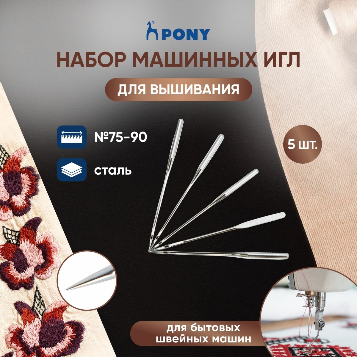 Иглы для швейных машин № 75-90 для вышивания, PONY, 51041, 5 шт интересное: