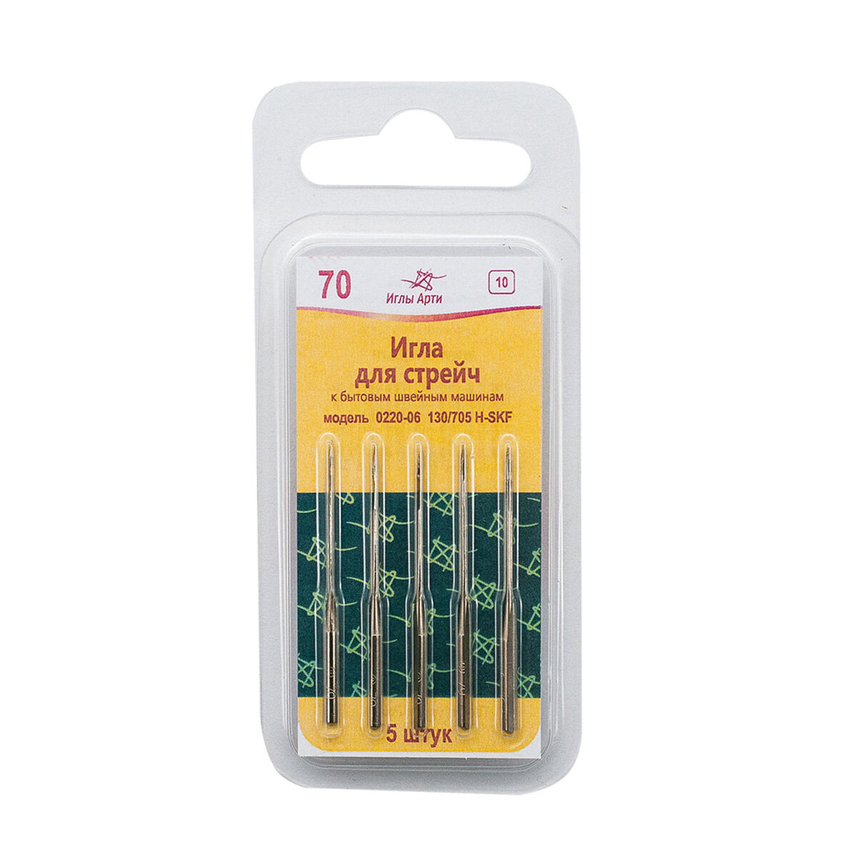 Иглы для швейных машин № 70, ткани стрейч, 5 шт, диаметр 0,7 мм, Арти интересное: