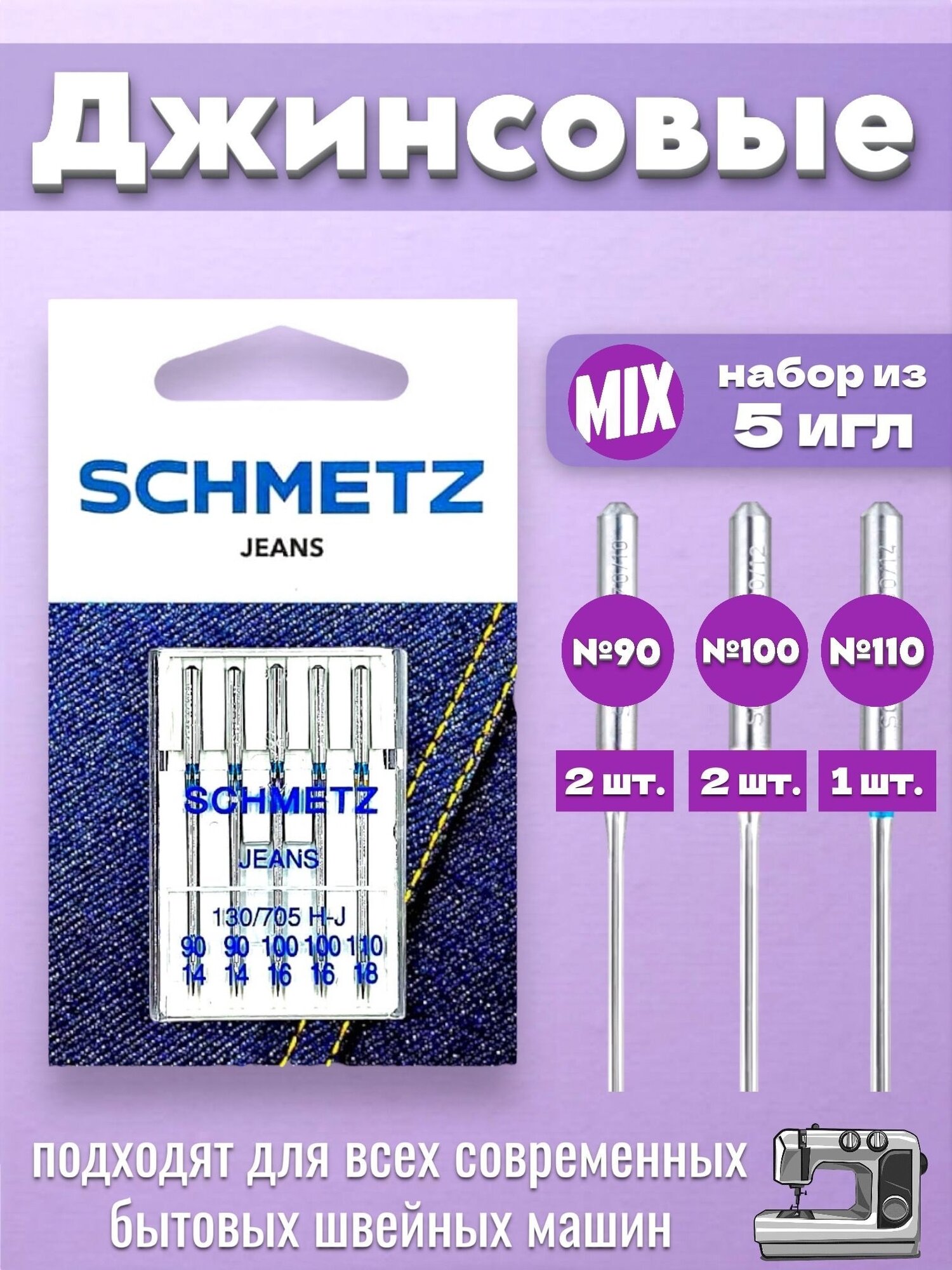 Купить Schmetz SM130/705J набор бытовых игл (№90 №100 №110) для джинсы
