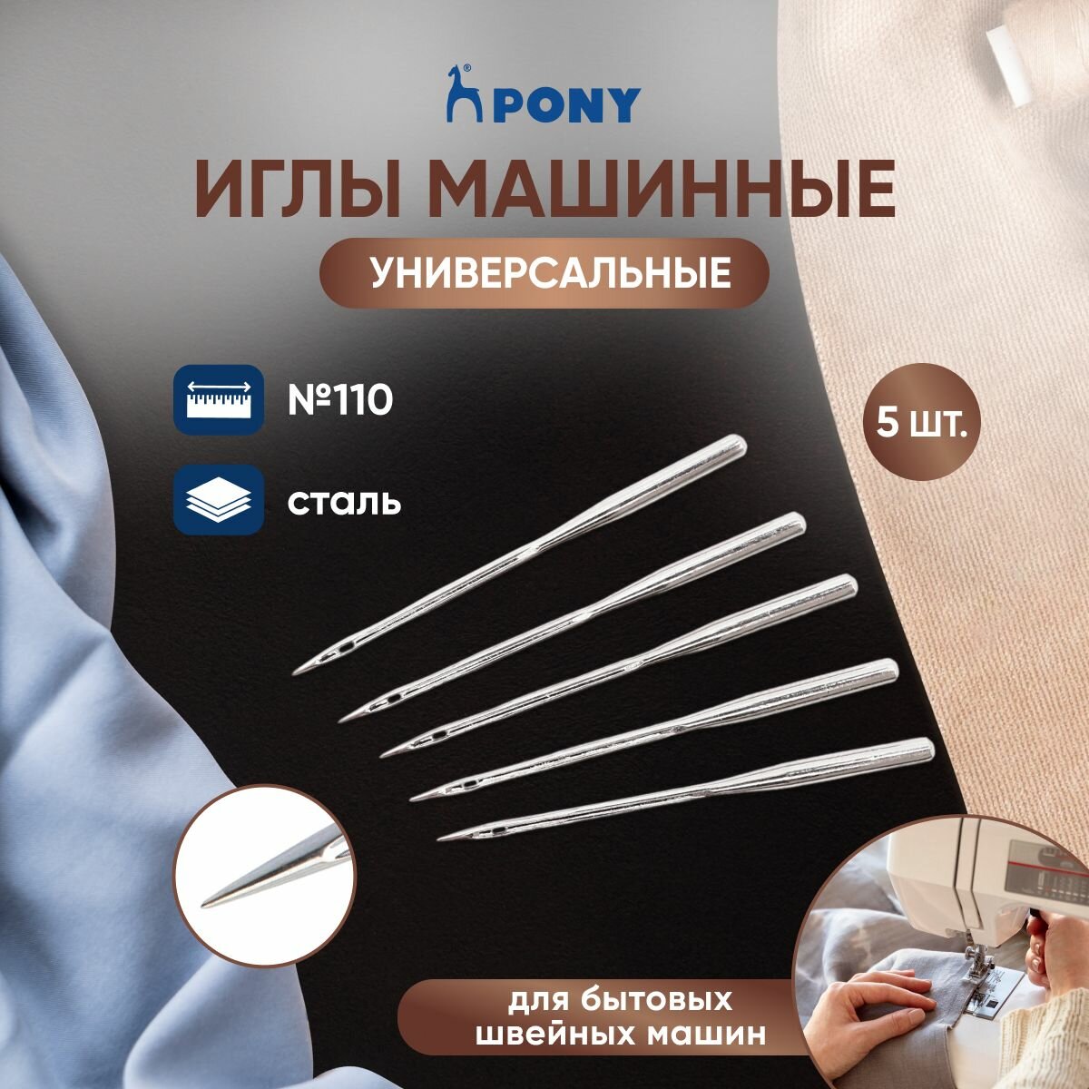 Иглы для швейных машин универсальные № 110, PONY, 51024, 5 шт интересное: