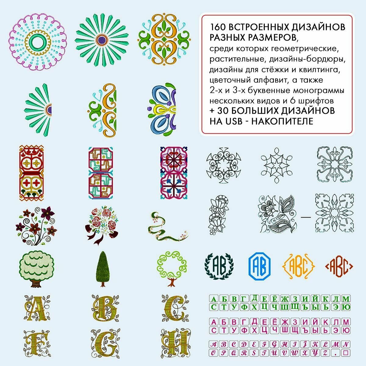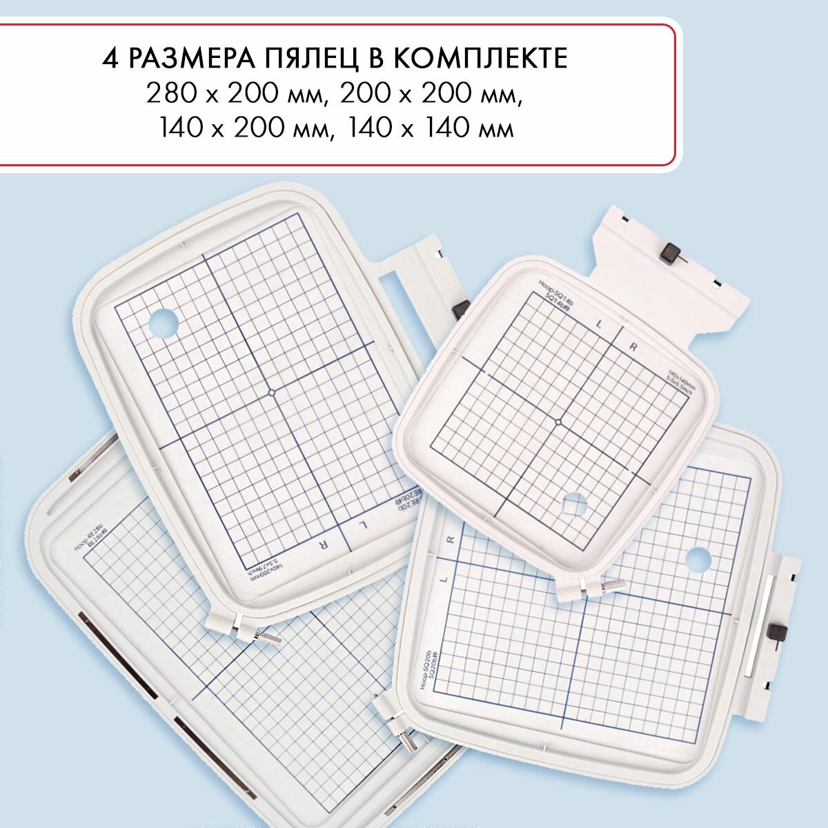 | Подробная комплектация | Шнур Мягкий чехол (накидка на машину) Расширительный столик Вышивальные пяльцы SQ14b с шаблоном 140х140 Вышивальные пяльцы RE20b с шаблоном 140х200 Вышивальные пяльцы SQ20b с шаблоном 200х200 Вышивальные пяльцы RE28b с шаблоном 200х280 Зажимы для пялец, 8 шт USB-флеш-накопитель с 30 большими эксклюзивными дизайнами ПО AcuStitch для Windows (онлайн-загрузка) Шпульки Отвертка Ключ-отвертка (для игольной пластины) Щеточка для чистки Ножницы Набор игл Держатели катушки большие Держатели катушки маленькие Держатель катушки специальные Дополнительный катушечный стержень Специальный шпуледержатель для вышивки с высоким натяжением Стилус для сенсорного экрана Средство для очистки шпуледержателя |