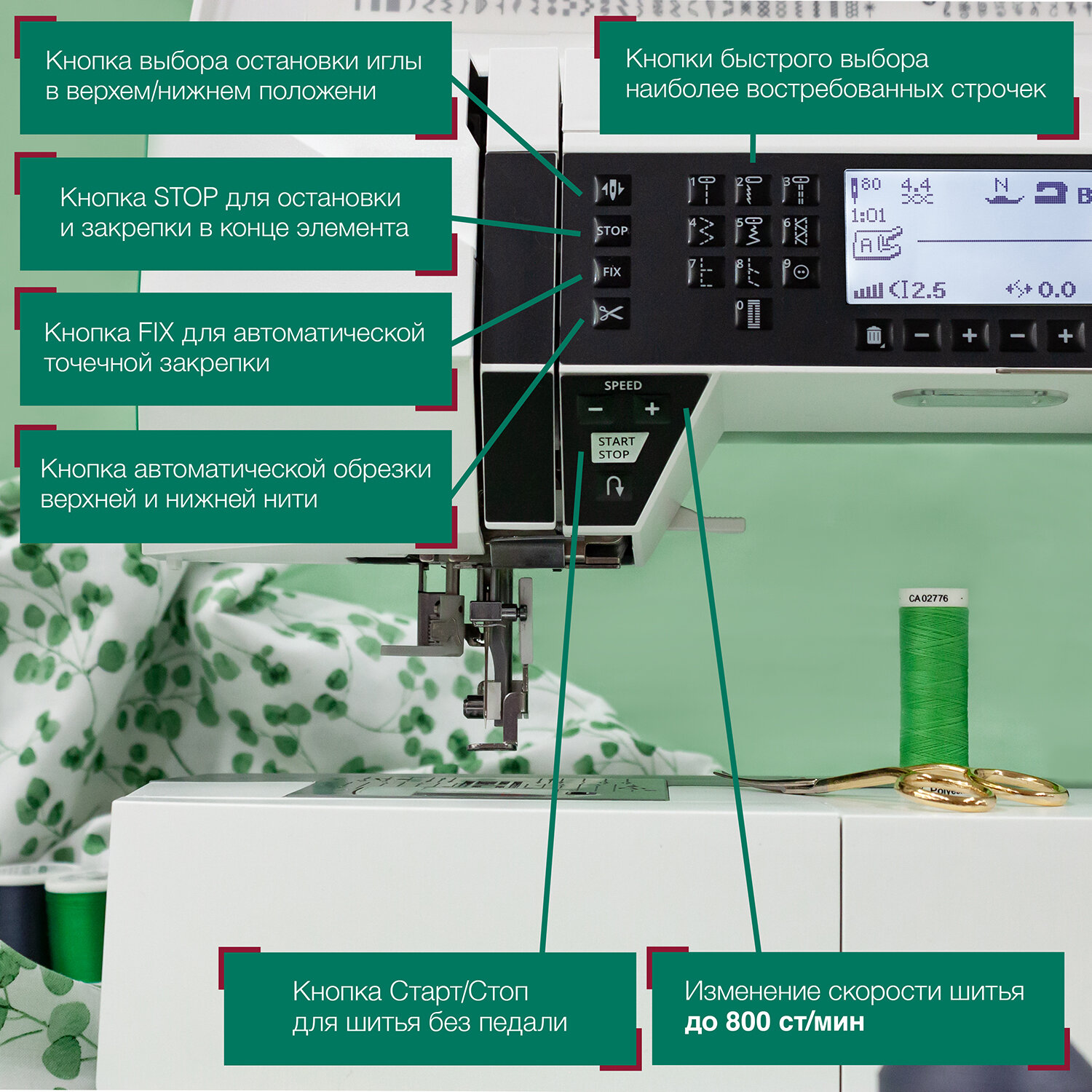 | Максимальная скорость вышивки | 800 ст/мин |