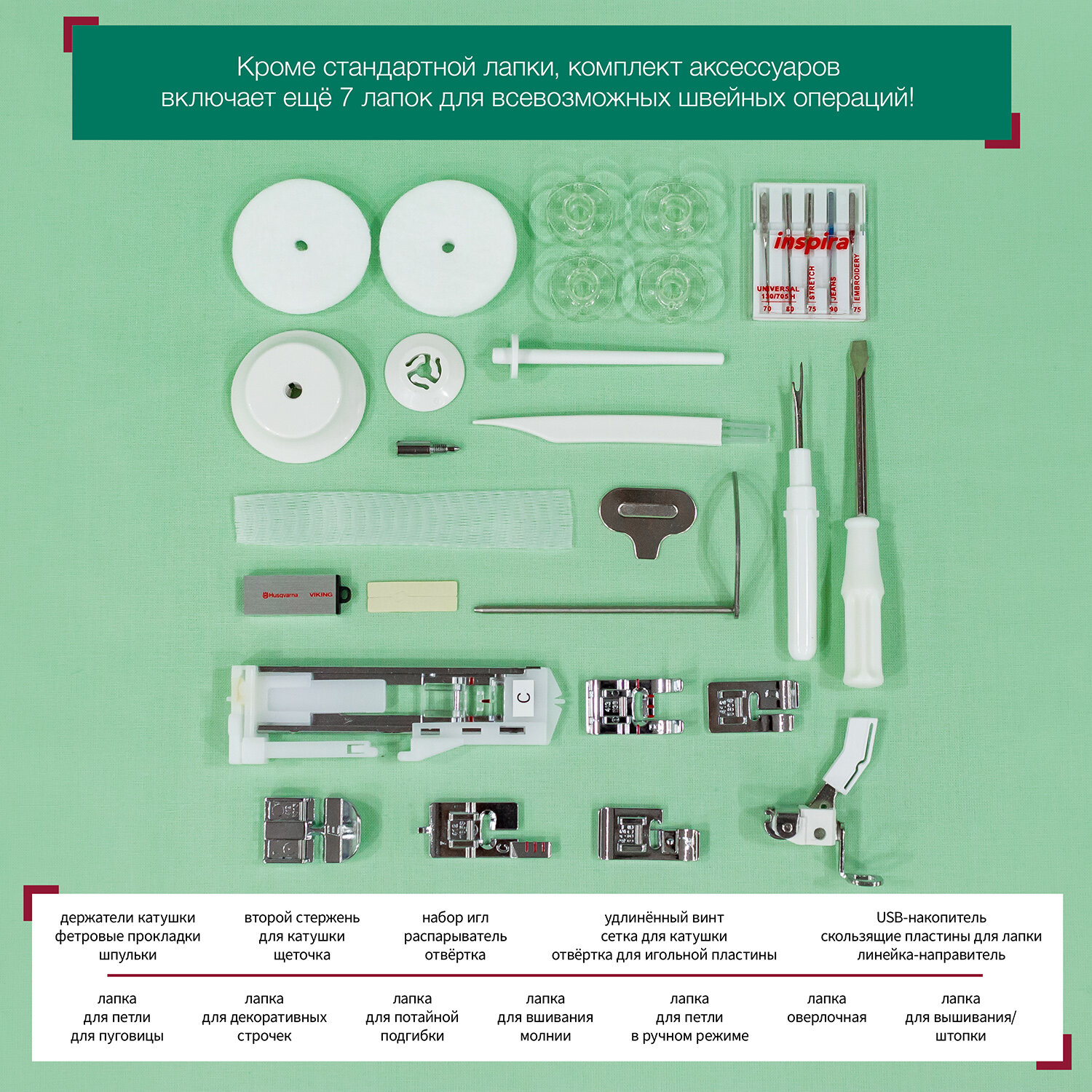 Швейно-вышивальная машина Husqvarna "Designer Jade 35", 55 Вт, USB-порт, отсек для аксессуаров интересное: