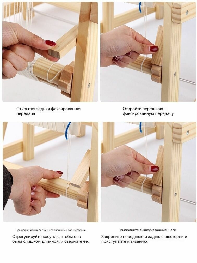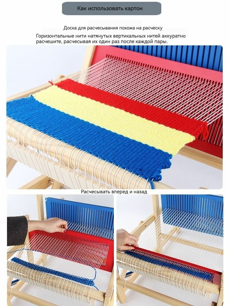 | Подробная комплектация | Вязальная машина*1, челнок*3, крепежный винт*2, шерсть (красная/желтая/синяя)×1 |